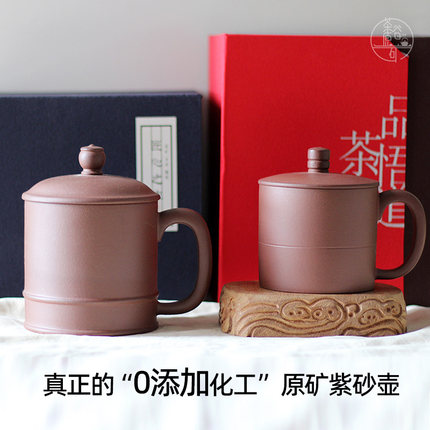 紫砂盖杯 可养 黄龙山原矿主人杯茶杯 无添加化工 中式送礼茶具