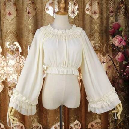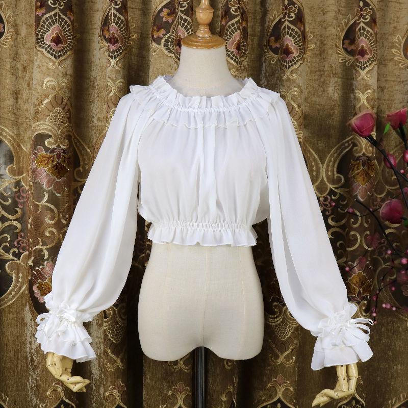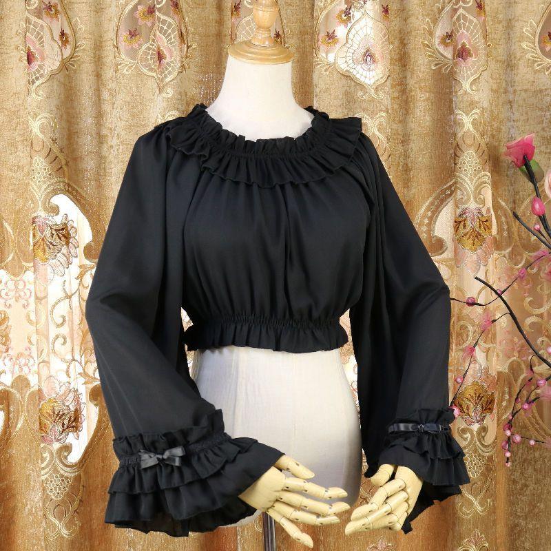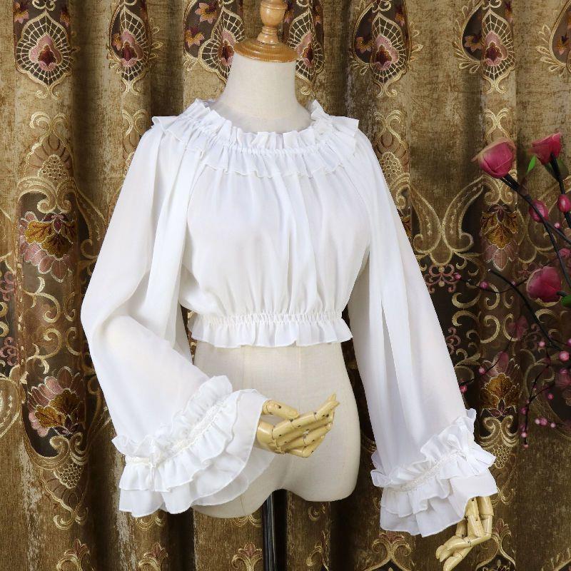 秋季洛丽塔长袖内搭衬衫荷叶边喇叭袖上衣打底衫lolita内搭打底衫