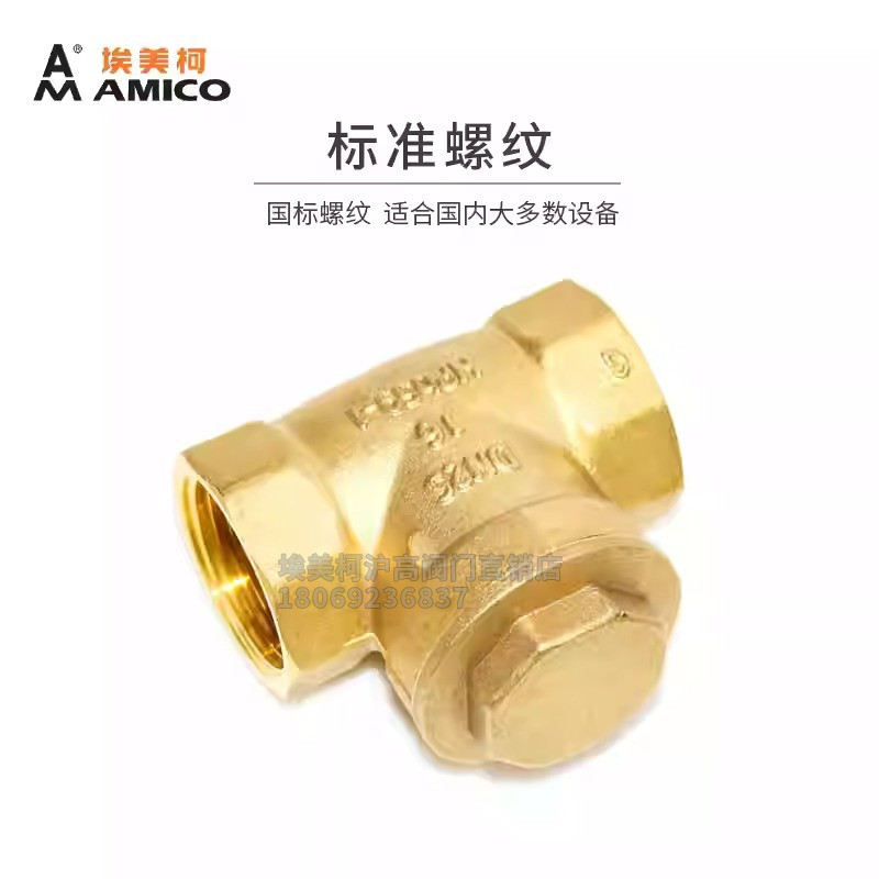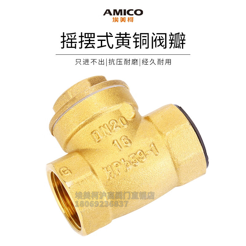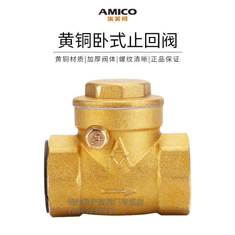 埃美柯429黄铜止回阀防倒流水表卧式止逆阀单向阀4分6分1寸DN1520