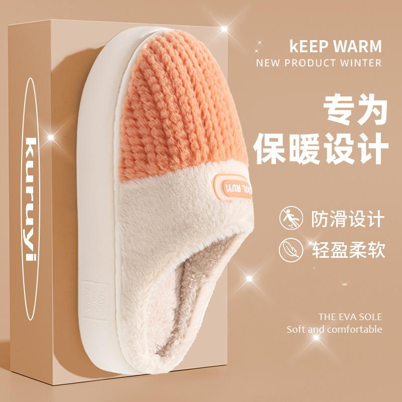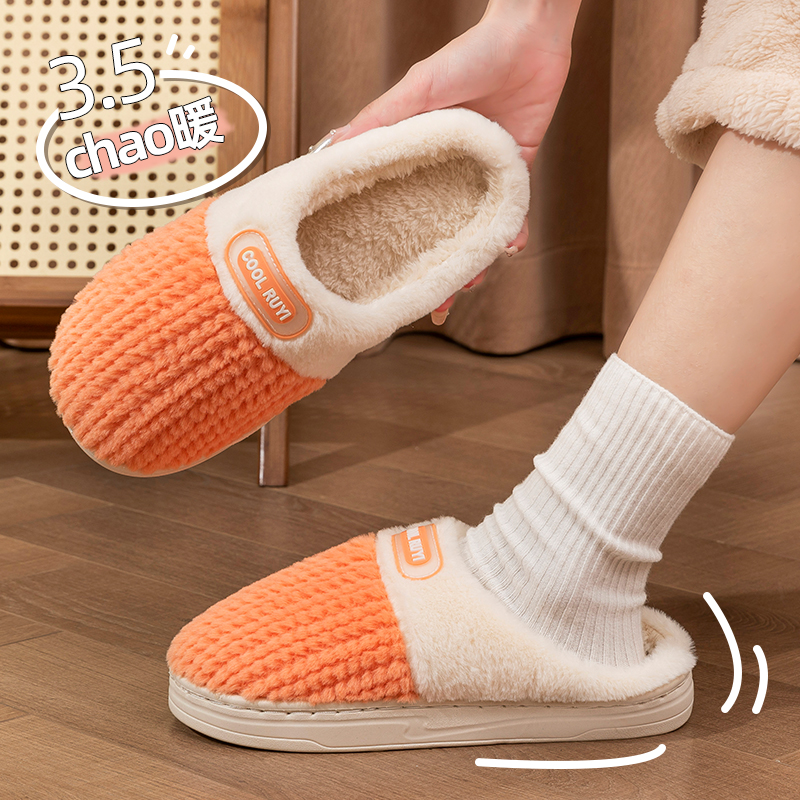 买一送一毛绒加厚底棉拖鞋女士冬季2025新款室内家居防滑棉鞋男款