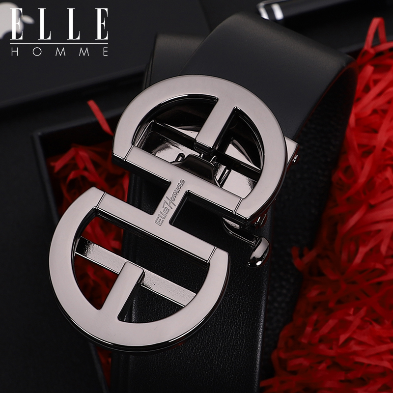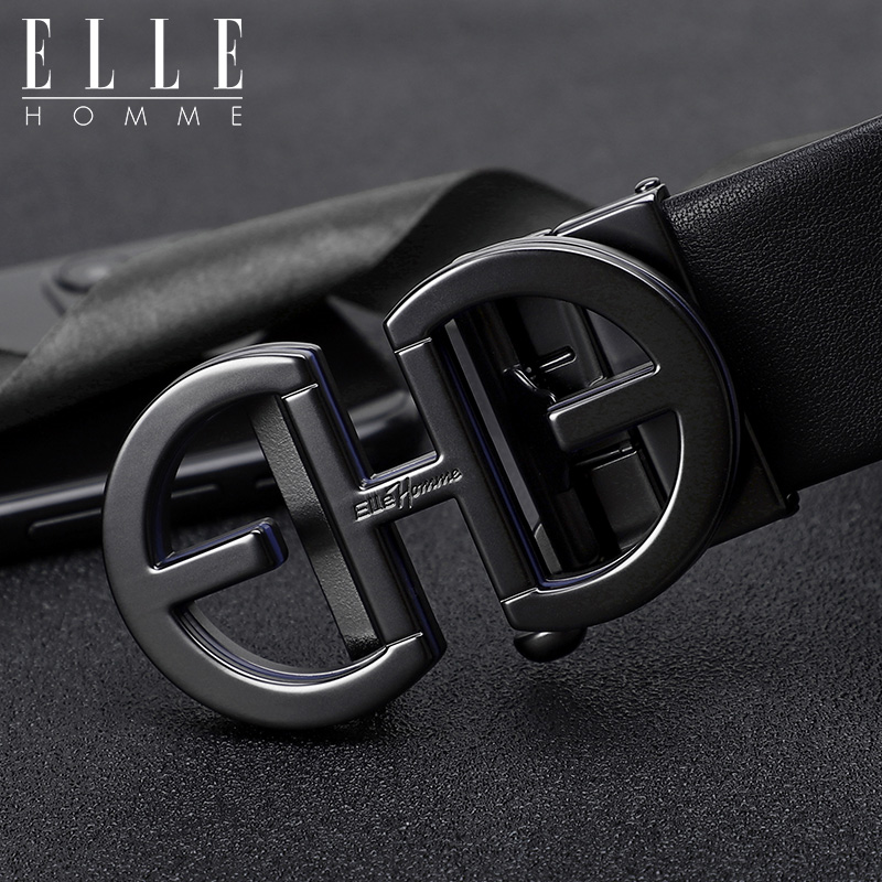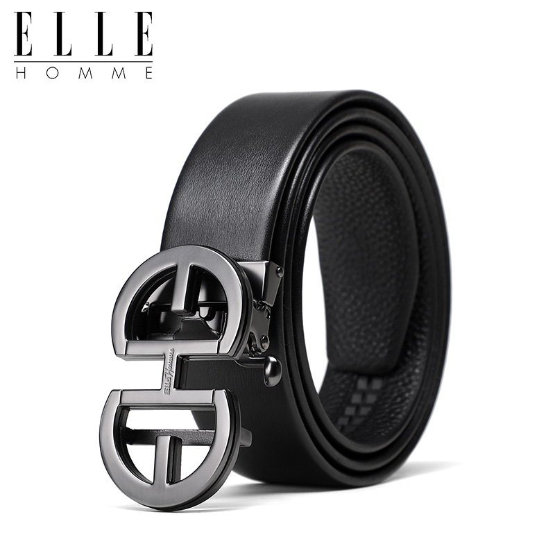 ELLE HOMME真皮自动扣皮带合金扣头男士腰带牛皮青年皮带商务裤带