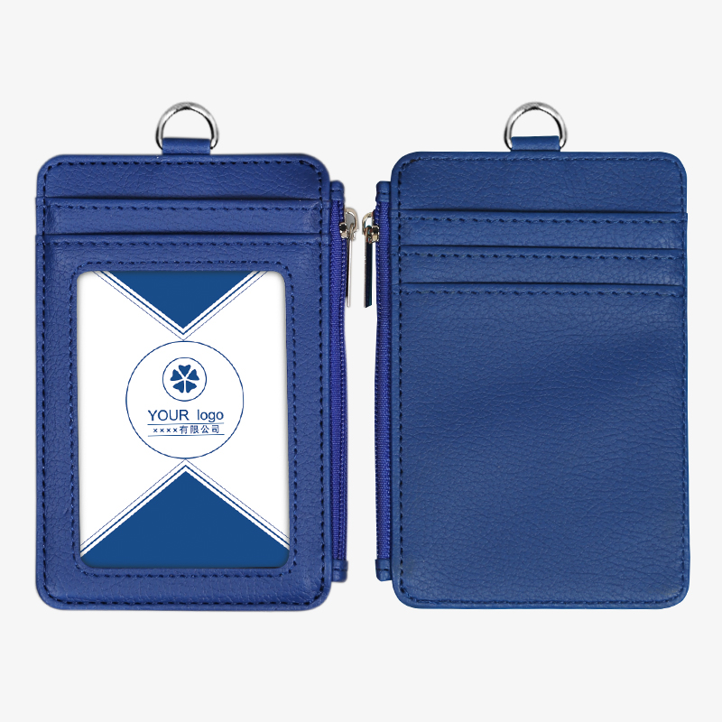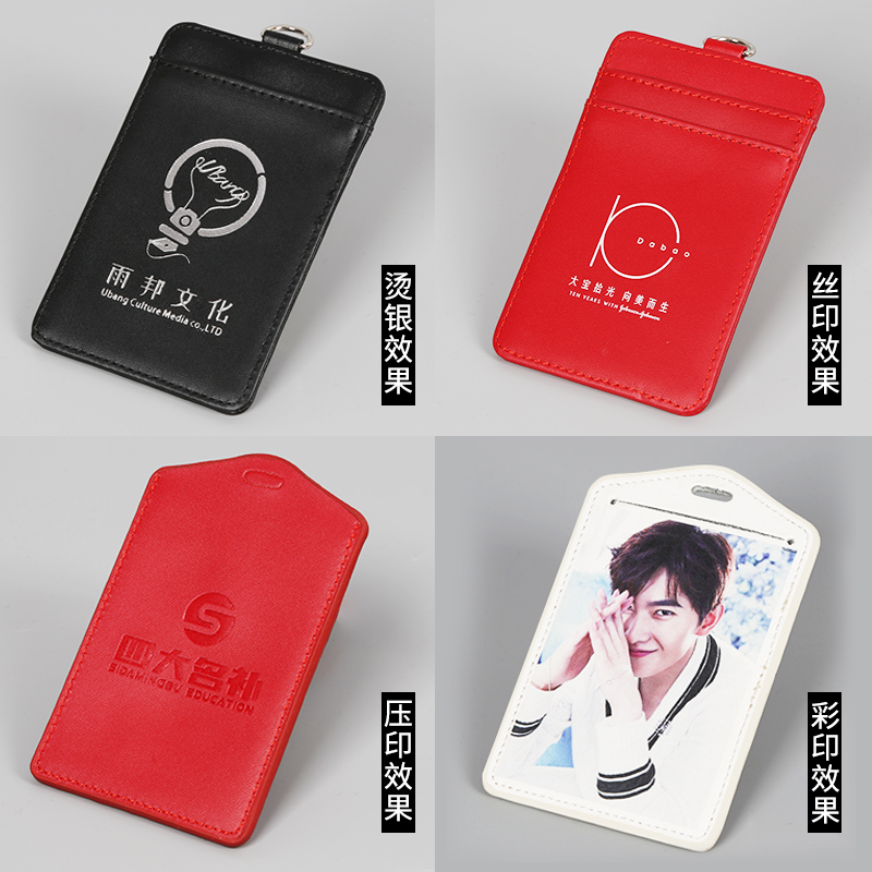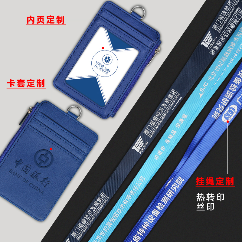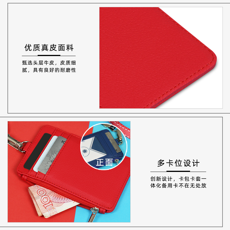 工作证卡套带挂绳多功能拉链包真皮高档工作牌透明横款校园门禁卡