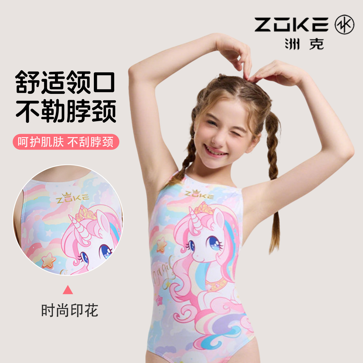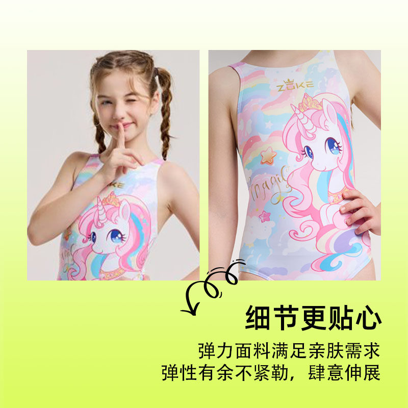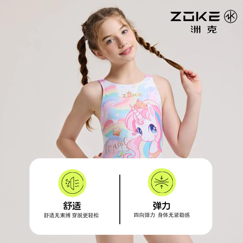 洲克zoke泳衣儿童连体专业游泳训练小马宝莉速干比赛女童女孩泳装