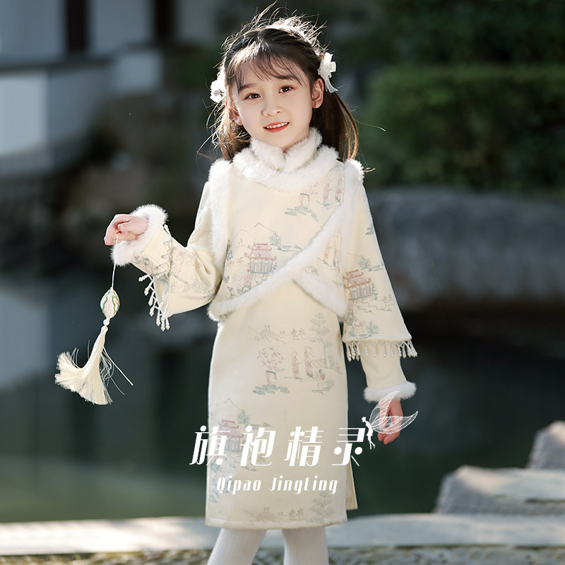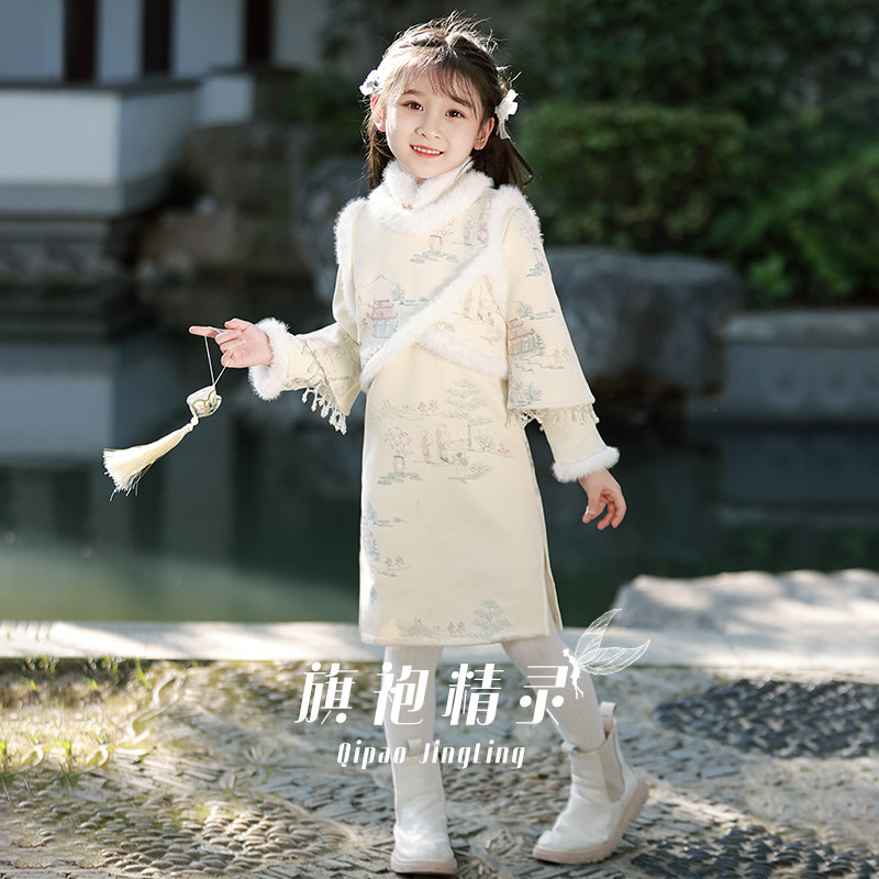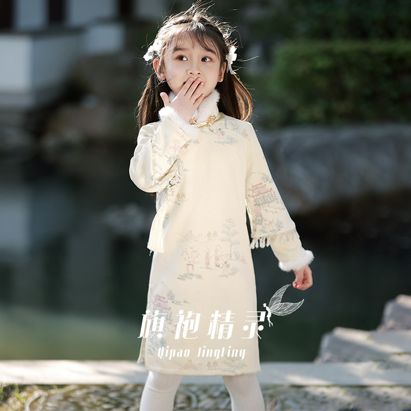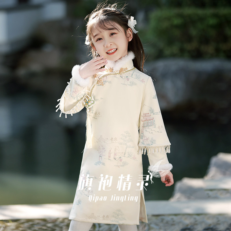 旗袍精灵女童旗袍冬季长袖连衣裙