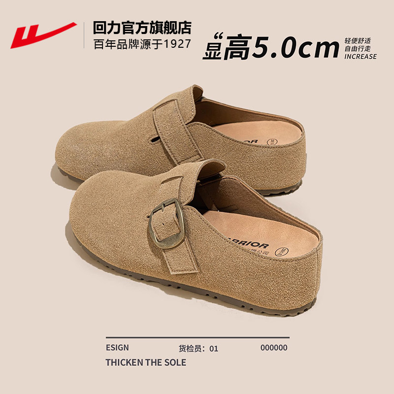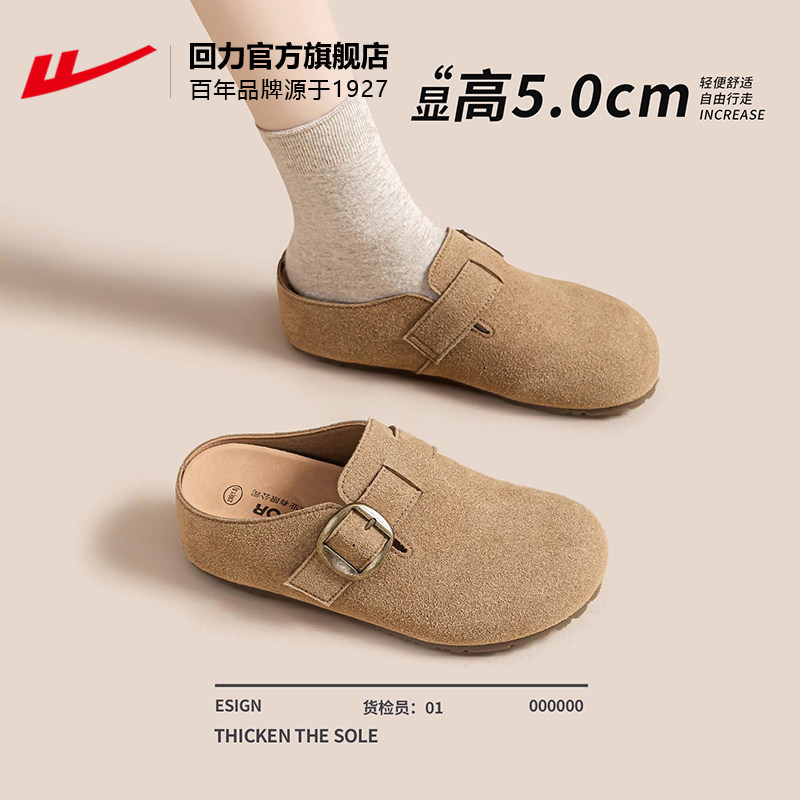 回力加绒勃肯鞋女2025新款秋冬单鞋内增高女鞋一脚蹬厚底半拖鞋子