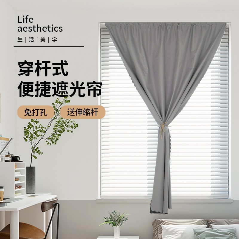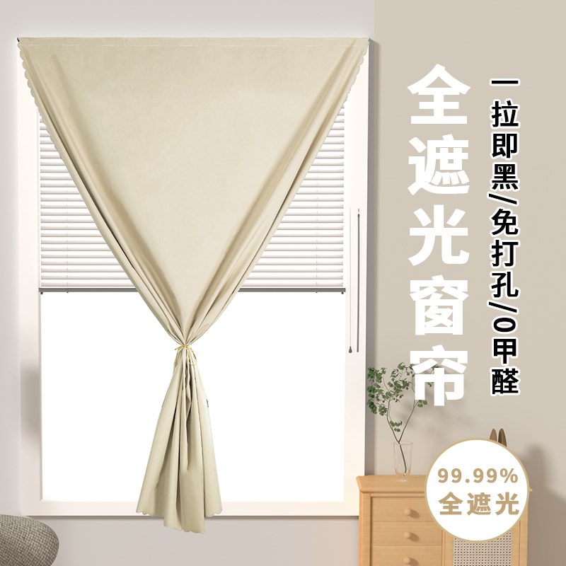2024新款全遮光窗帘布神器魔术贴免打孔安装卧室飘窗遮阳防晒隔热