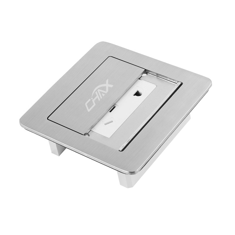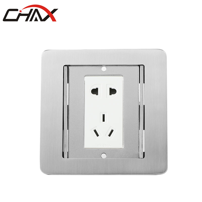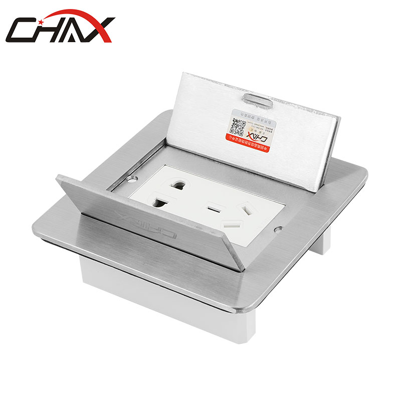 CHAX地插座超薄不锈钢隐藏式双开门五孔防水地板插家用地面插头座