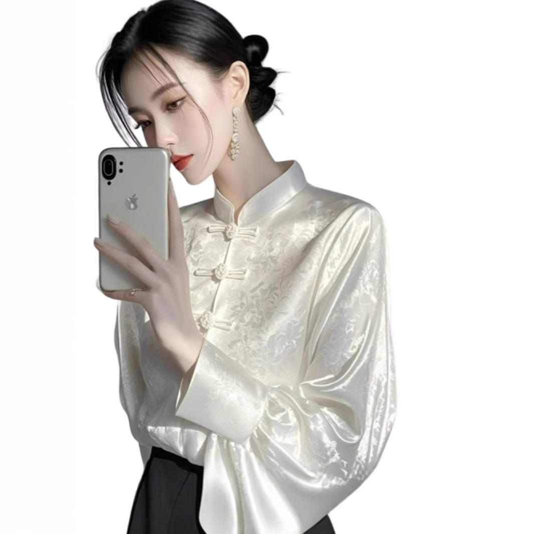 新中式国风白色提花衬衫女春季高级感内搭打底衫搭配马面裙的上衣