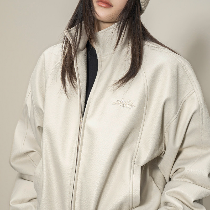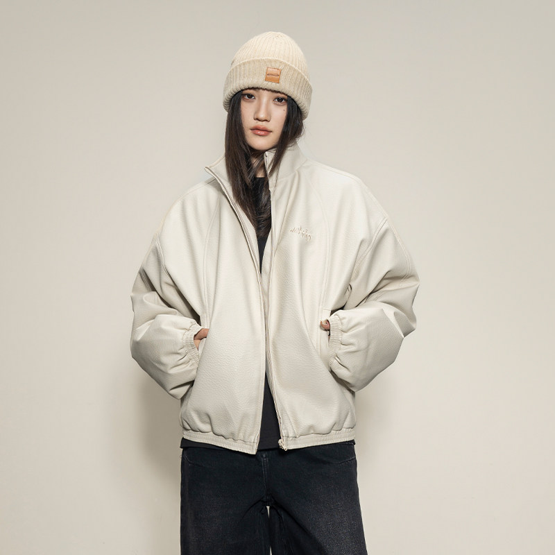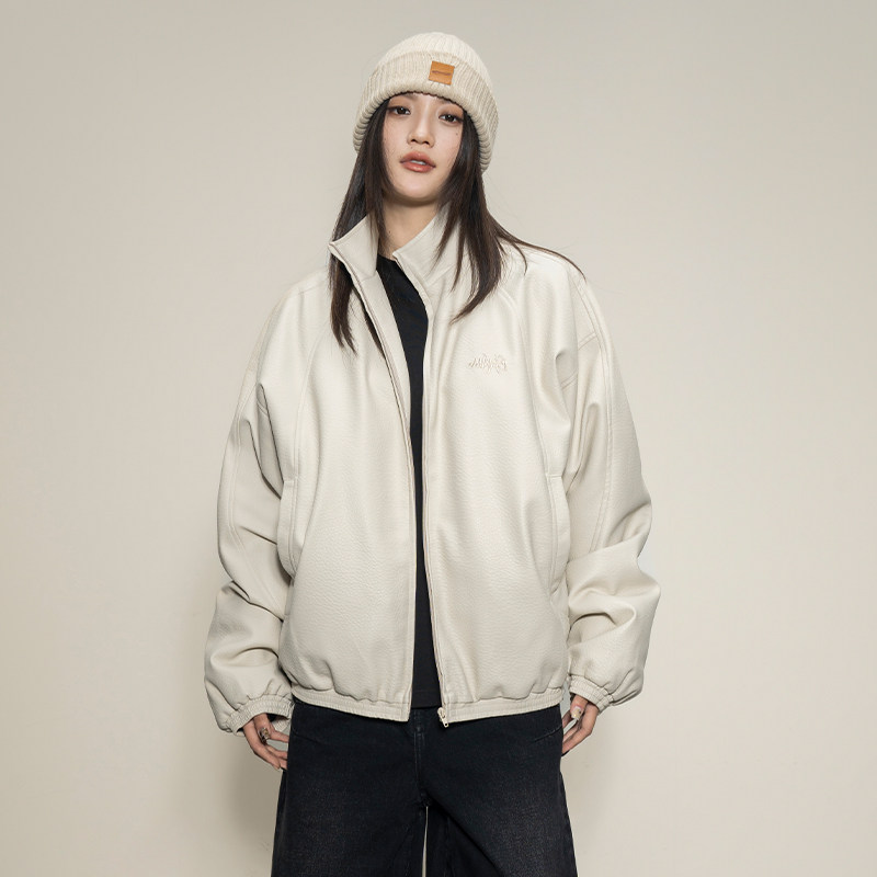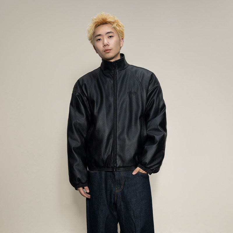 Makemore夹克外套男新款底特律PU皮荔枝纹夹棉休闲美式情侣上衣潮