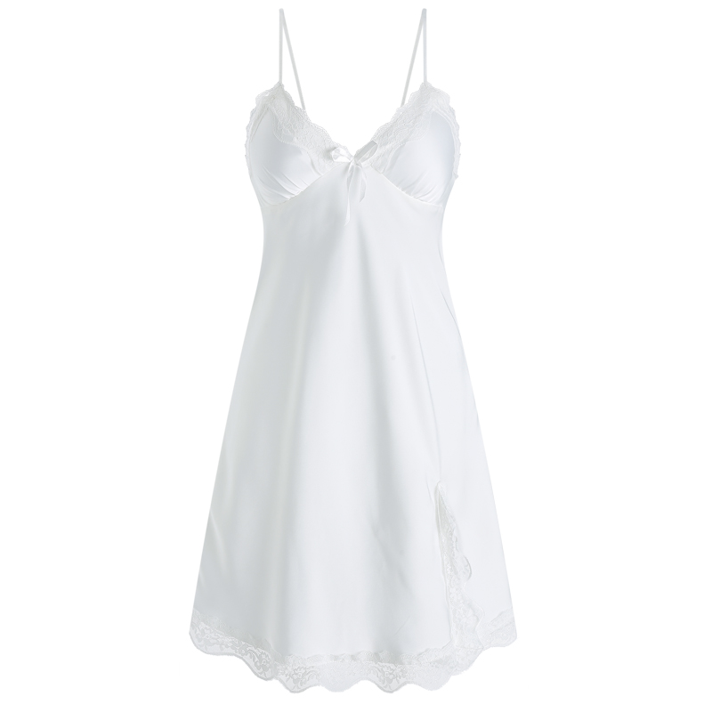 柠檬太太性感睡衣女春冰丝高级感斜开叉带胸垫吊带睡裙家居服女夏