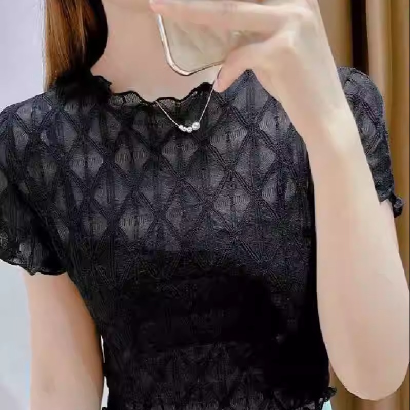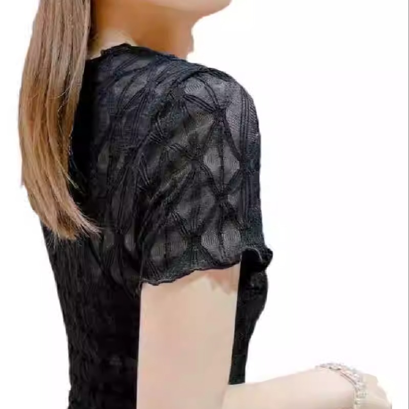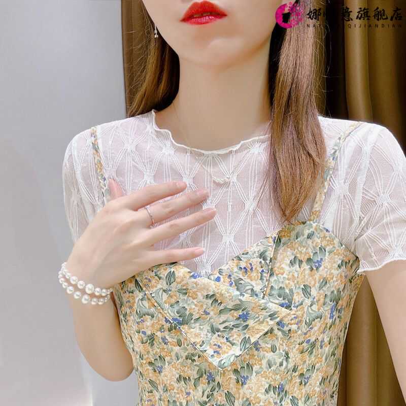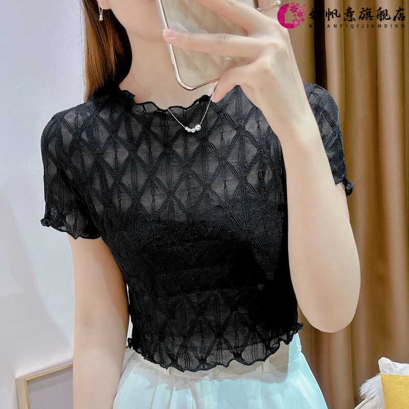 白色短款网纱打底衫女夏吊带裙内搭t恤短袖纱衣薄款防晒冰丝罩衫
