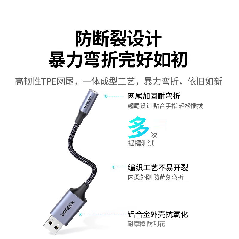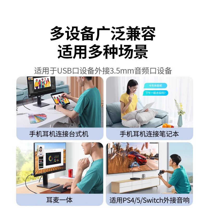 绿联usb转35mm音频线耳机孔麦克风音响耳麦二合一笔记本台式机电脑接口转接头typec转换器3.5毫米aux外置声卡