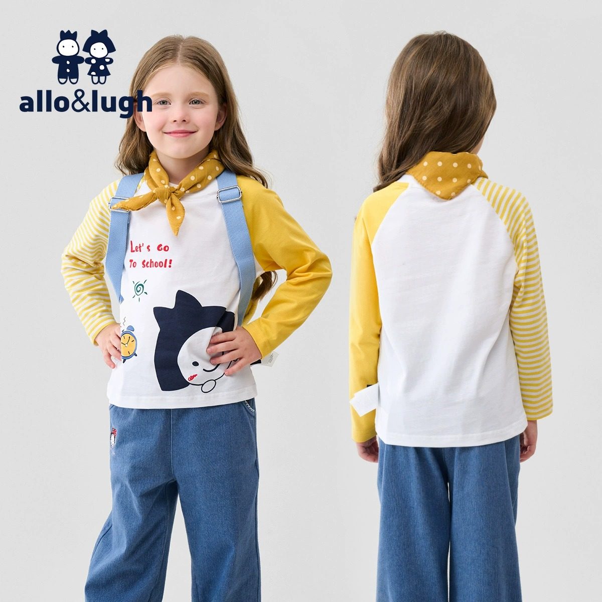 阿路和如儿童t恤2025春装纯棉中小女童衣服长袖t恤女打底衫童装潮