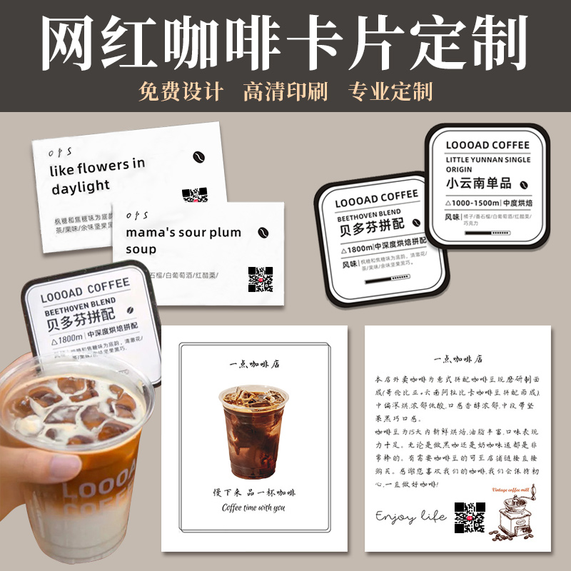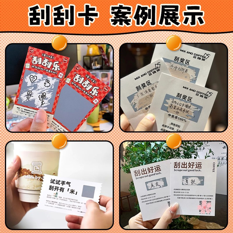 创意咖啡刮刮卡定制卡通风味介绍卡奶茶氛围涂层抽奖券设计饮料店开业广告外卖活动刮刮乐二维码logo订做印刷