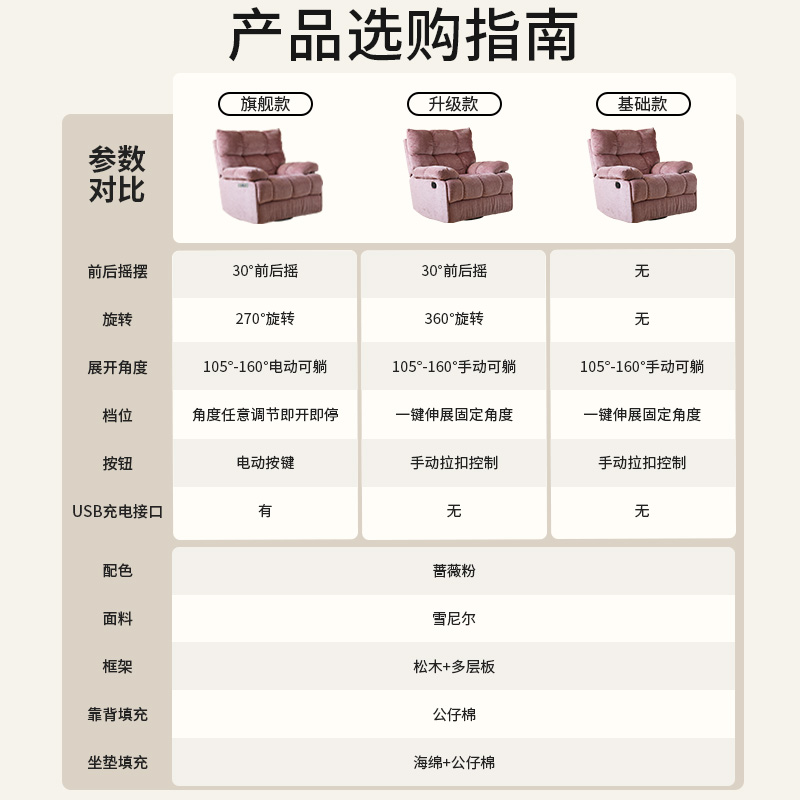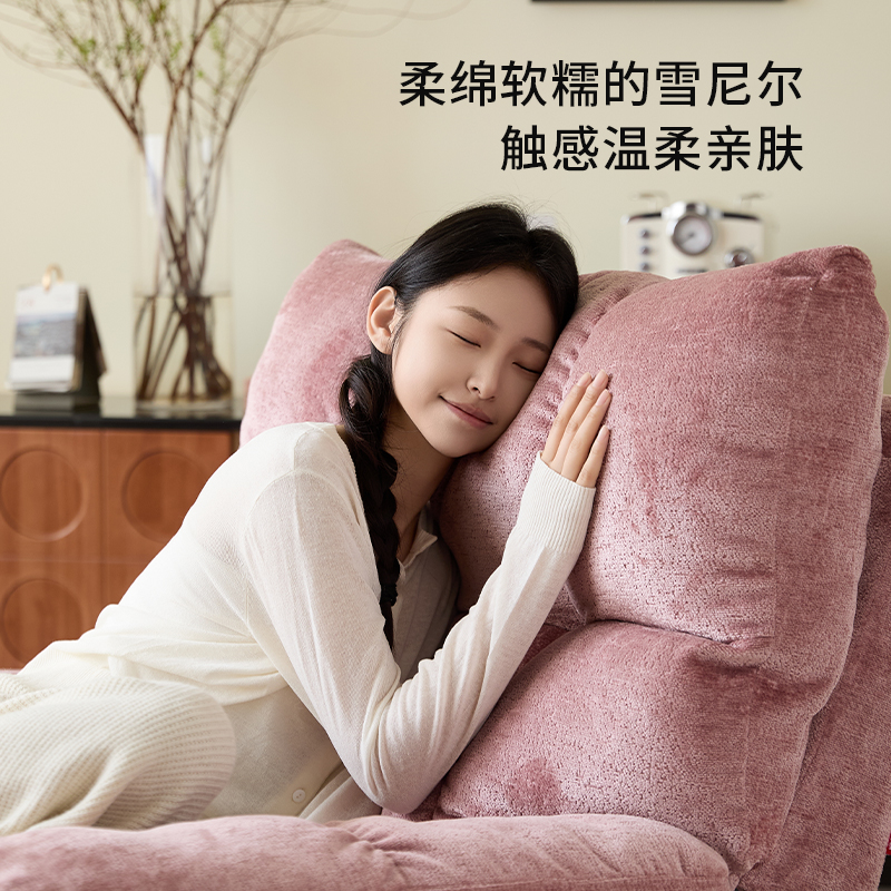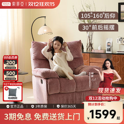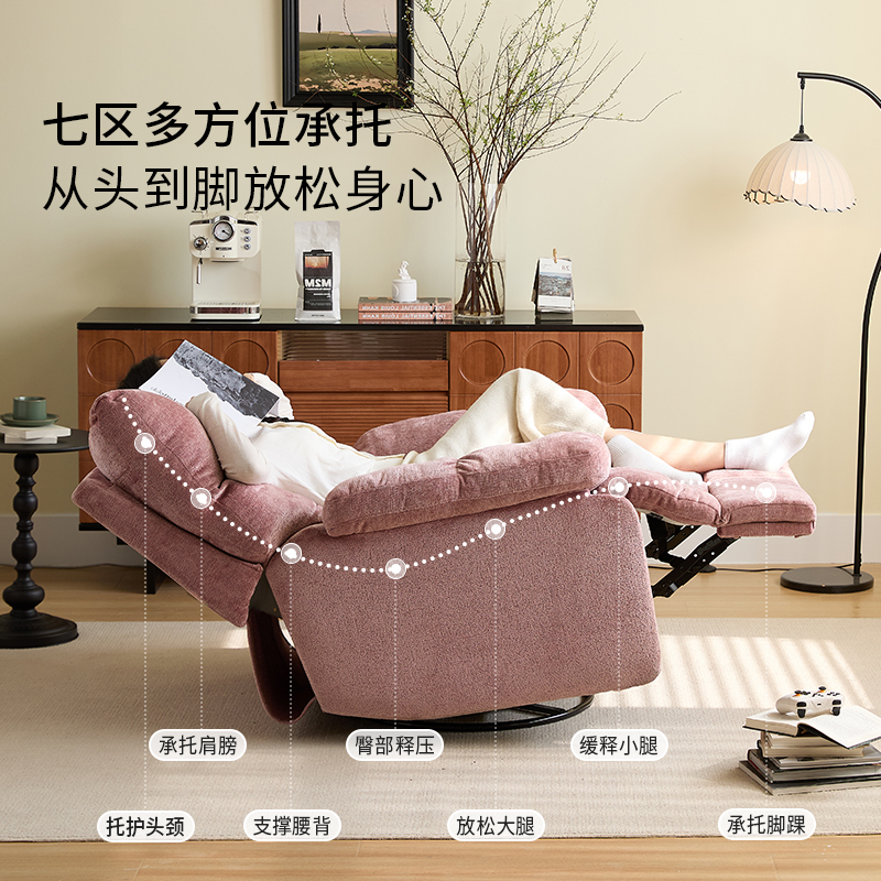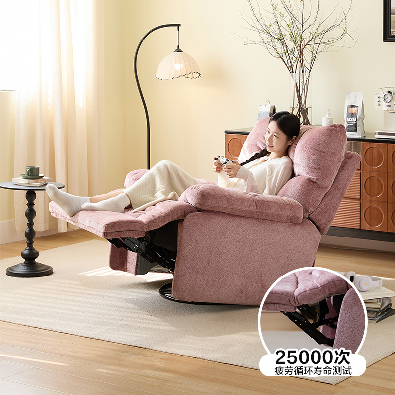 索菲亚单人电动功能沙发粉色奶油风布艺懒人沙发可摇可转单椅A006