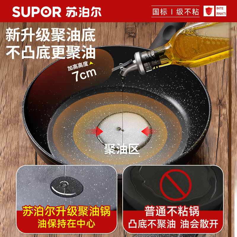 苏泊尔平底锅不粘锅家用麦饭石炒锅煎饼蛋牛排煎锅燃气电磁炉通用