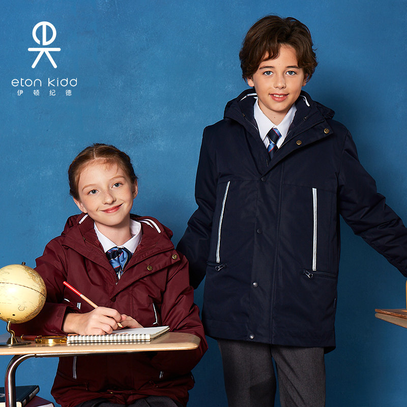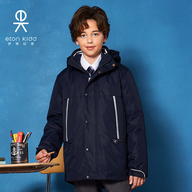 伊顿纪德男女童冬装保暖连帽外套校服儿童两件套3M棉脱卸式防寒服
