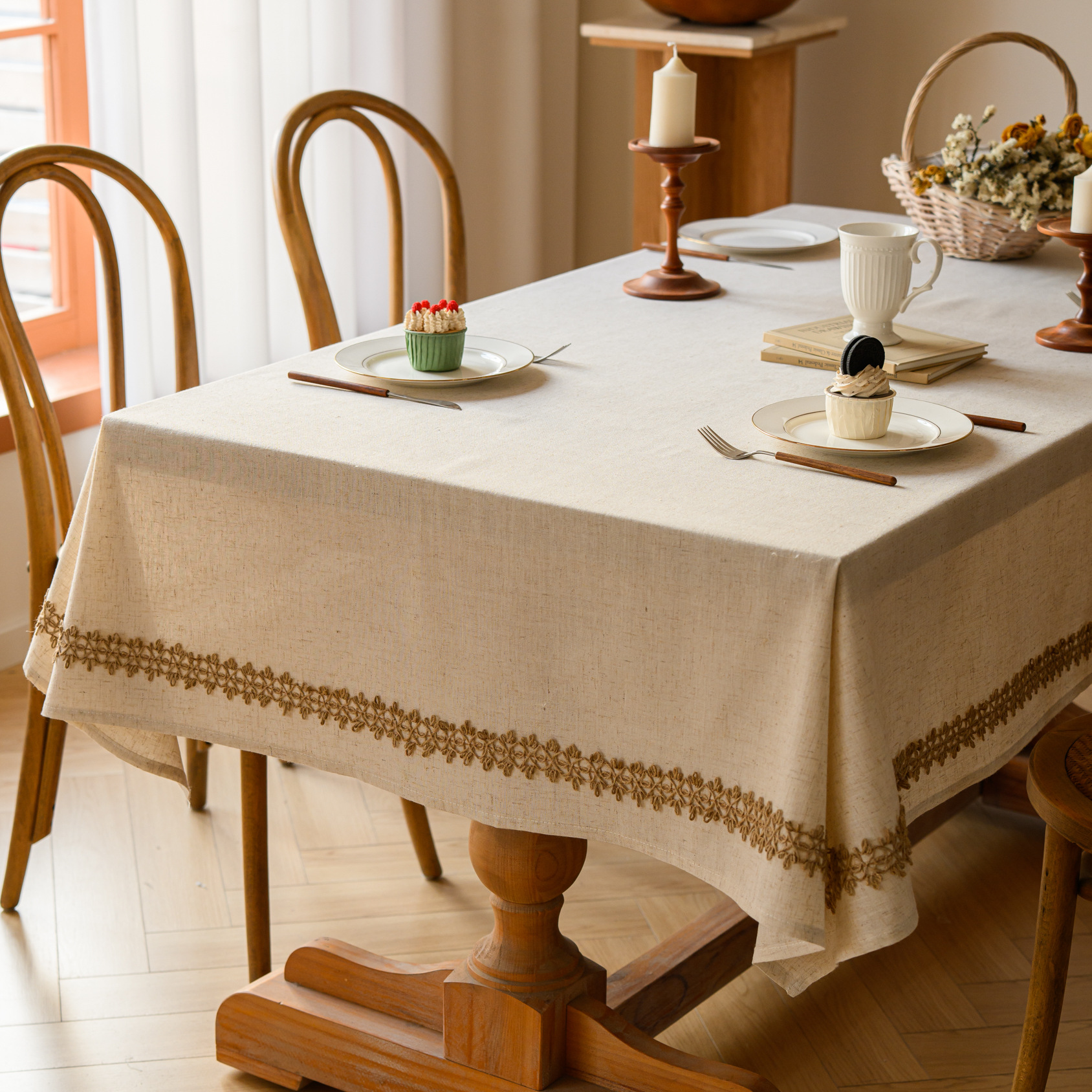 ins风麻绳花边涤麻桌布美式餐桌布茶几布布艺长方形北欧文艺台布