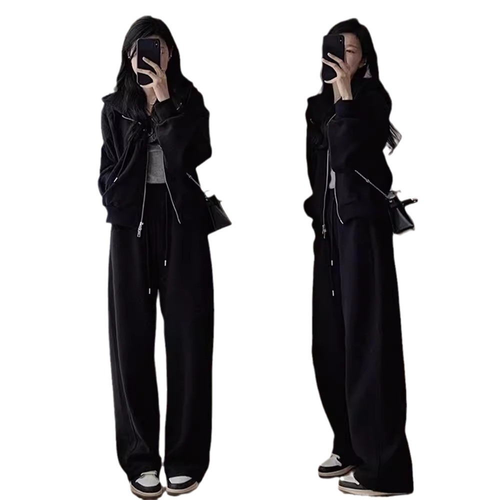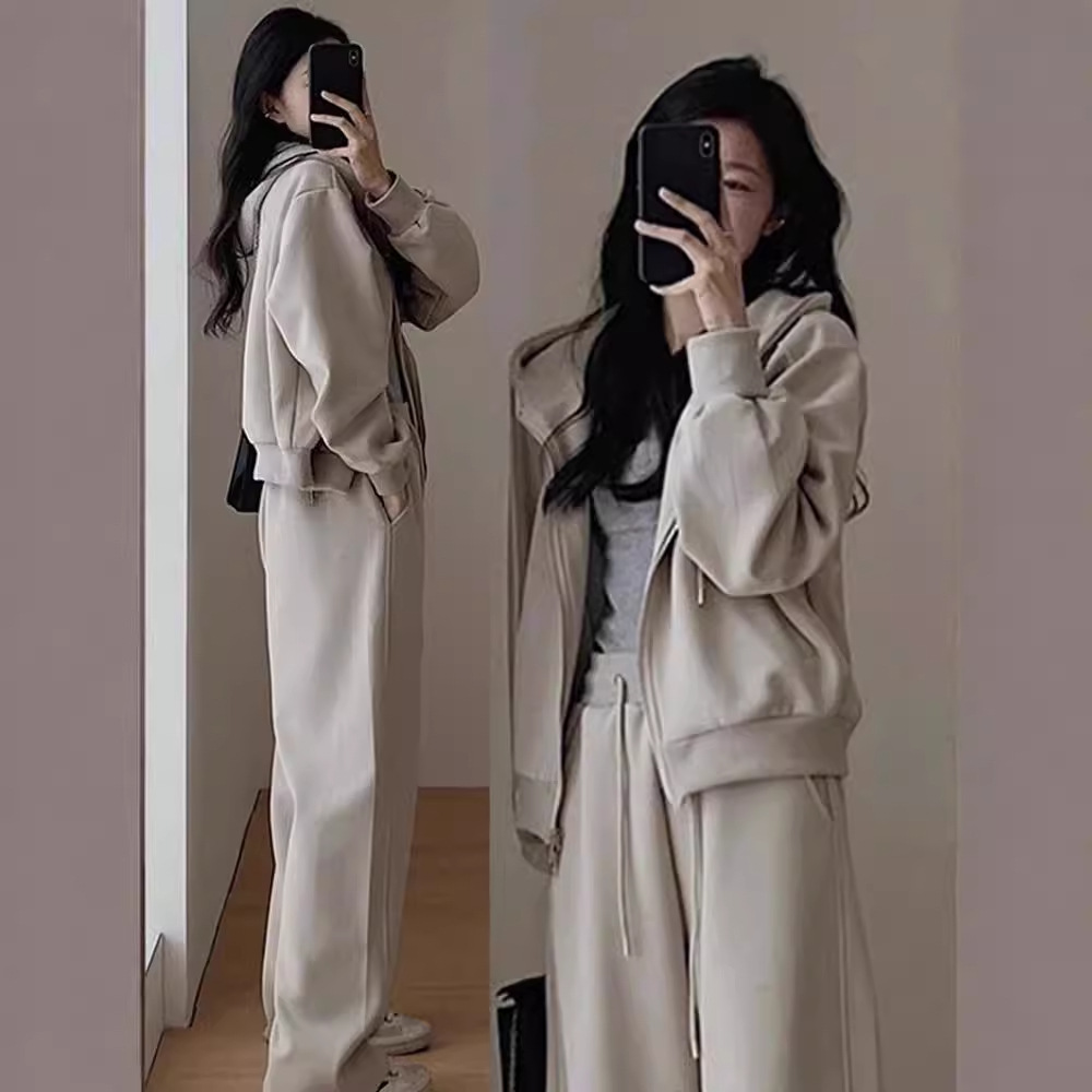 秋冬休闲卫衣运动套装时尚气质港风显瘦减龄阔腿裤连帽两件套