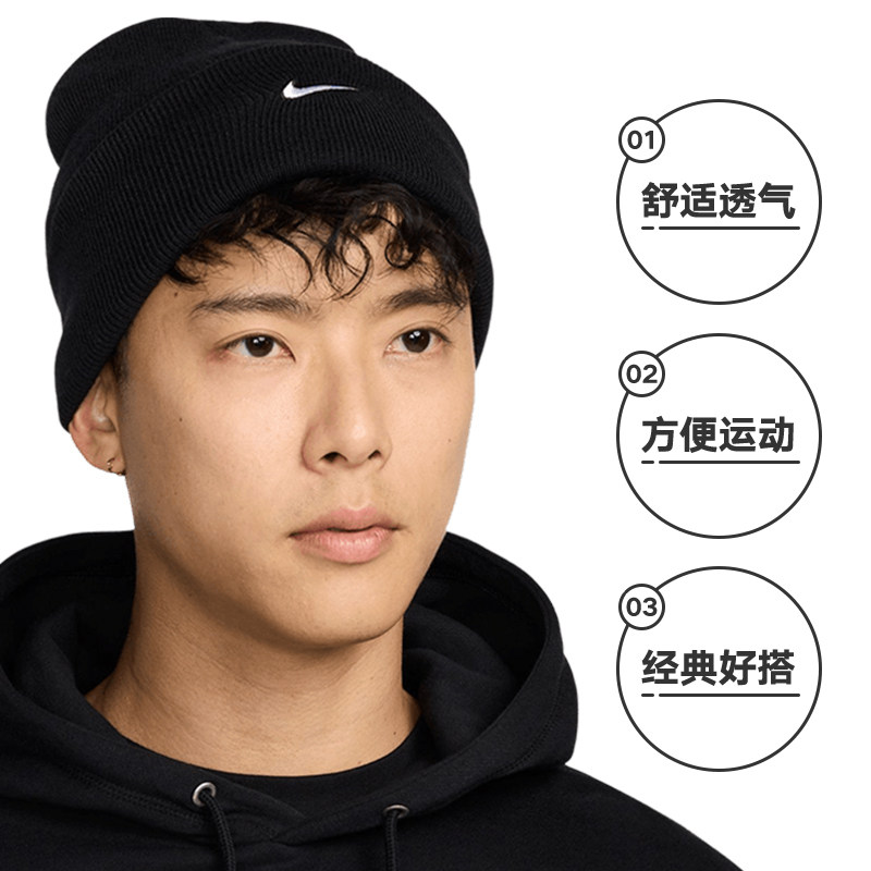 【自营】Nike耐克男女冬新款刺绣运动帽保暖针织毛线帽HF0187-010