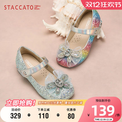 思加图童鞋小蝴蝶闪钻爱莎公主鞋软底舒适透气水晶鞋秋季女童单鞋