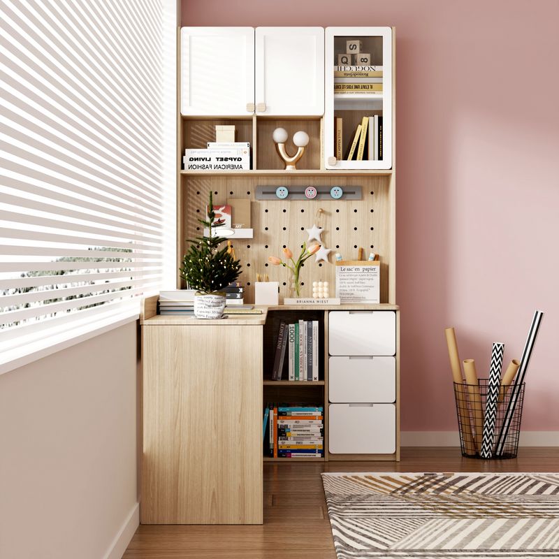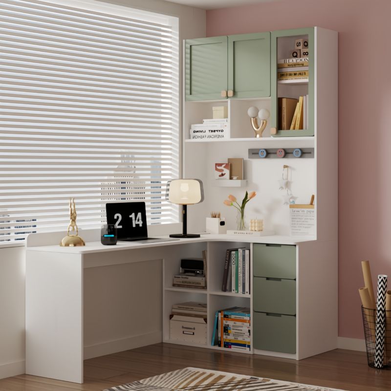 实木转角书桌书架一体北欧儿童书柜组合学习桌L型电脑桌