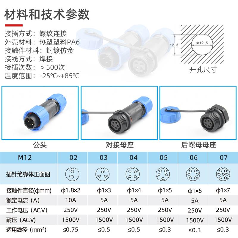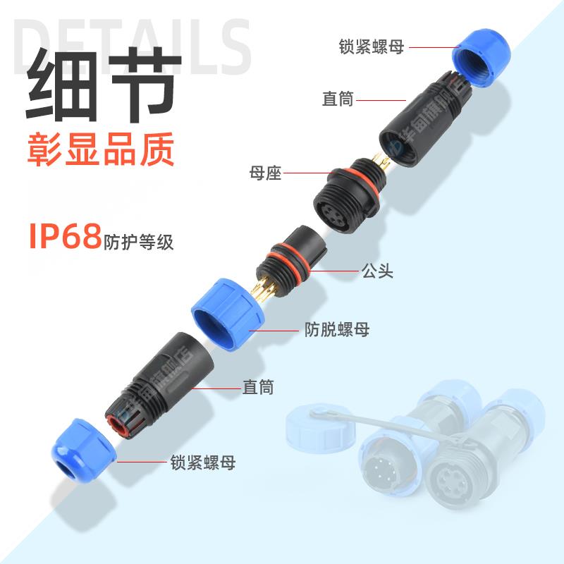 M12航空插头2/3/4/5/6/7芯防水公母对接信号传输接头电源连接器