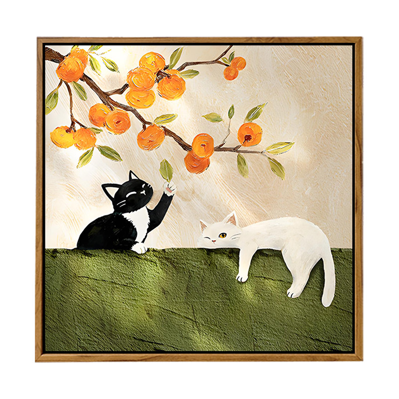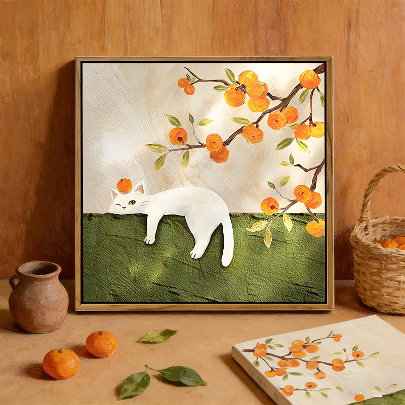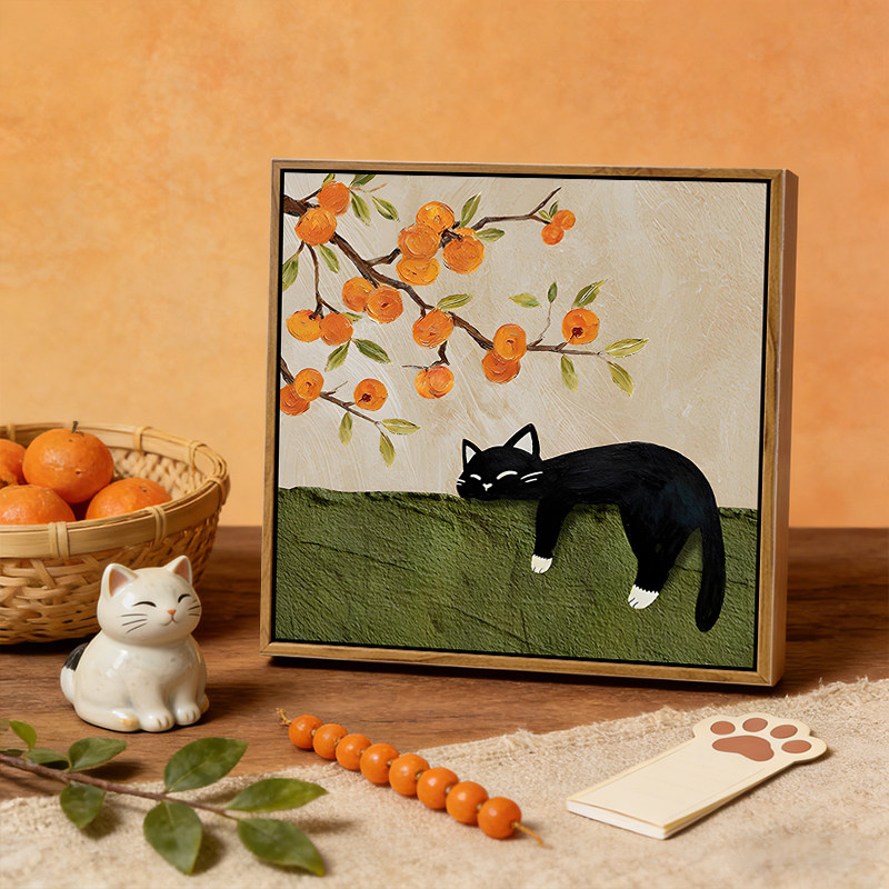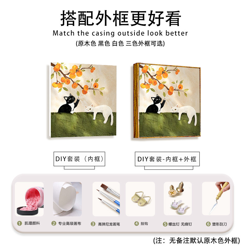 中古风柿柿如意猫咪石英砂肌理画DIY材料手工填充色客厅数字油画