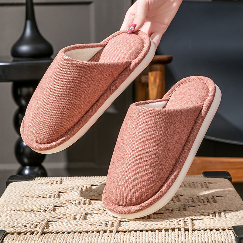 冬季防滑棉拖鞋女士2026新款室内家居棉麻老人布底拖鞋男家用秋冬