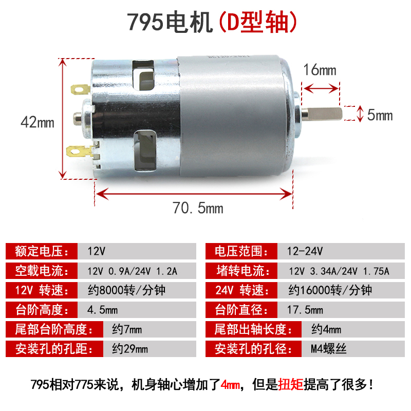 795电机D轴 高速大扭力DIY电动工具电钻台锯大功率直流马达12v24v