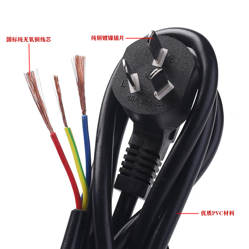 国标纯铜电源线三芯插头线三孔10A/16A连接线2.5/4大平方插头带线