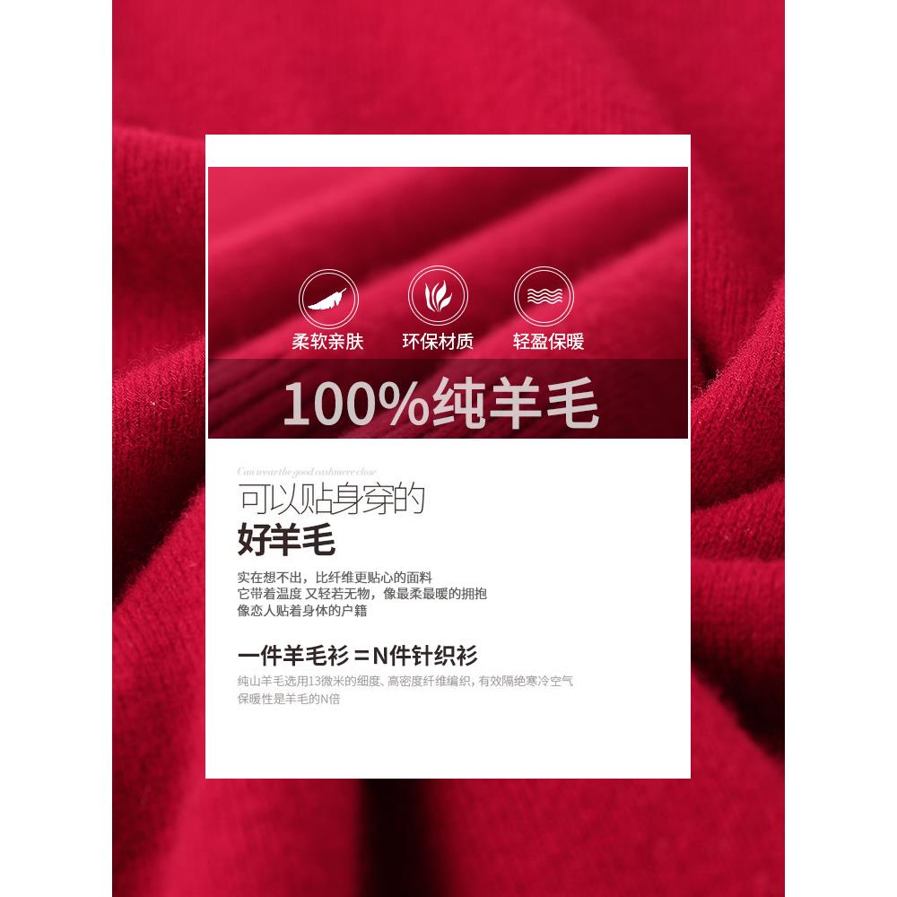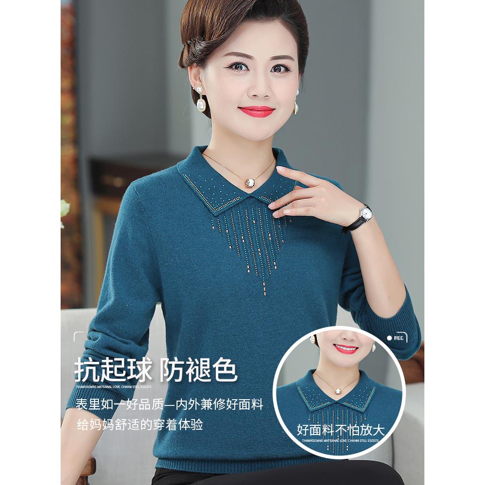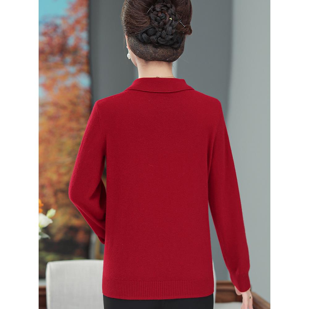 中年妈妈春装纯羊毛衫红色上衣中老年人女装翻领毛衣打底衫婚礼服