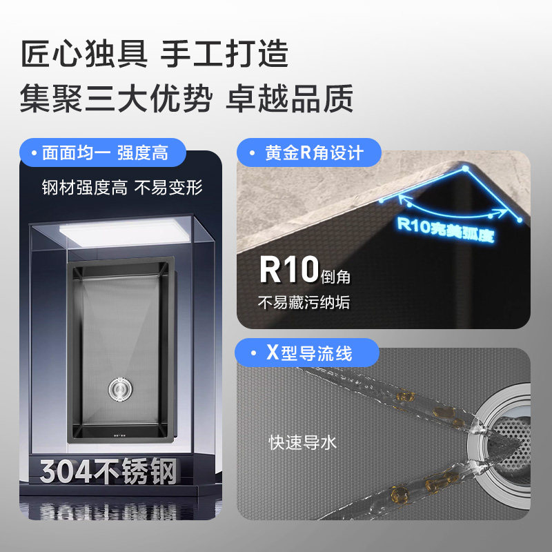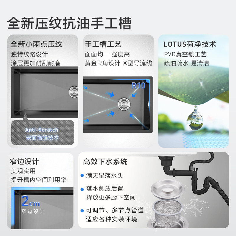 摩恩304不锈钢厨房水槽纳米压纹大单槽台下盆SK35134/35334/35534