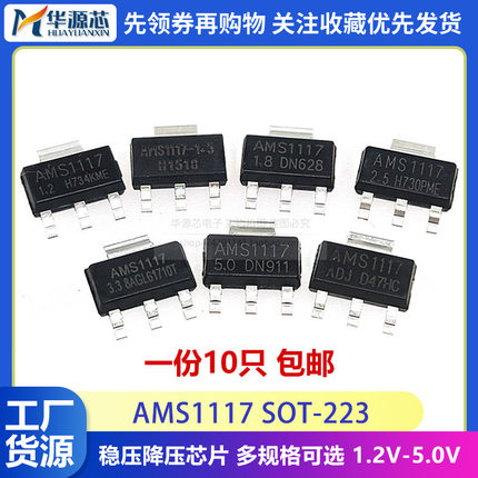 AMS1117-3.3/5.0/2.5/1.8/1.5/1.2/ADJ SOT-223降压IC线性稳压LDO