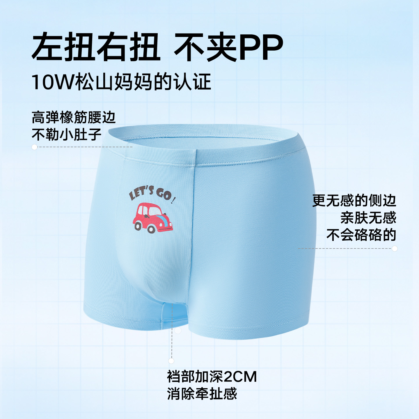 松山儿童熊猫松团莫代尔内裤男童四角裤女童平角裤中大童夏季内裤
