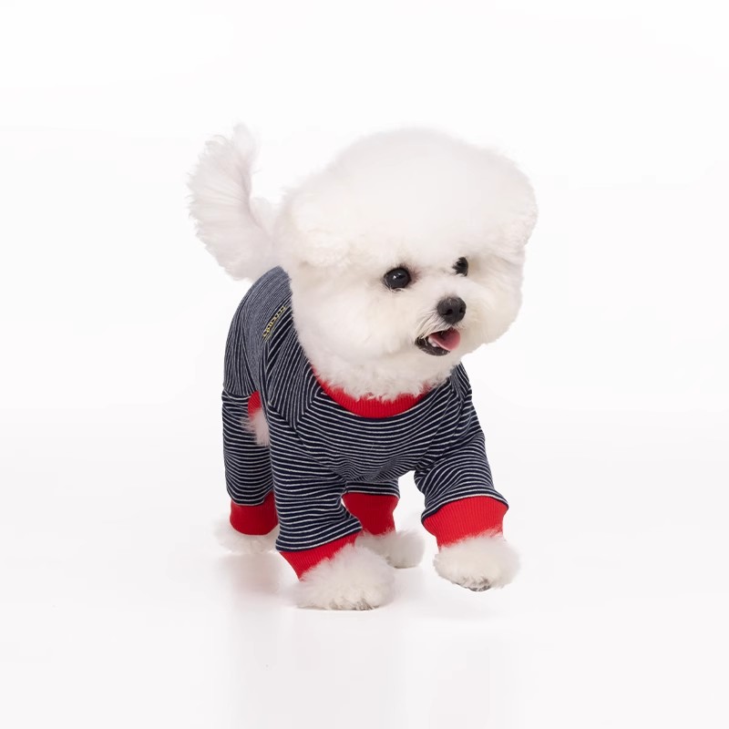 sniff宠物狗狗猫咪春季四脚条纹打底衫泰迪比熊雪纳瑞小型犬衣服