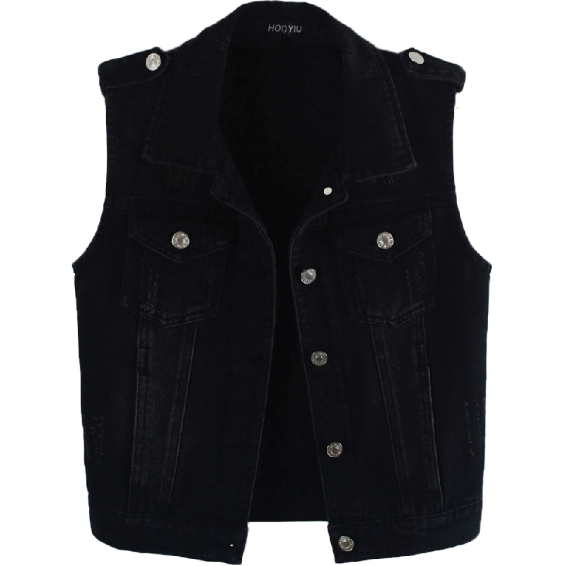 牛仔马甲女短款修身韩版潮显瘦春秋无袖外套背心大码马夹黑色肩章