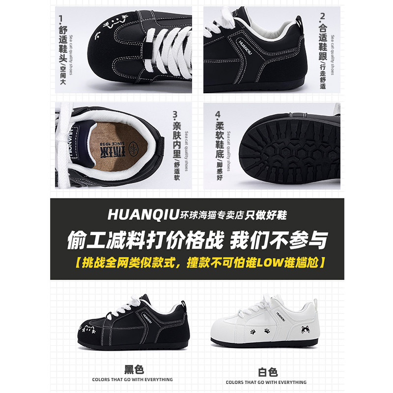 环球白色德训鞋女2026春季新款百搭休闲内增高女鞋圆头运动鞋子女