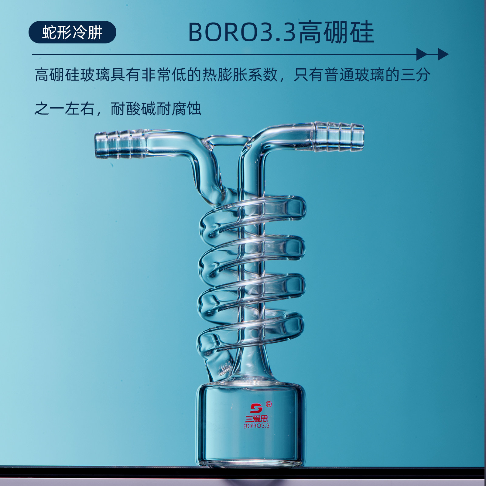 三爱思 蛇形冷肼D19 冷凝管冷凝器冷阱冷井 一体式 抽真空耐高温 加厚高硼硅玻璃 可定制 物理化学实验室器材