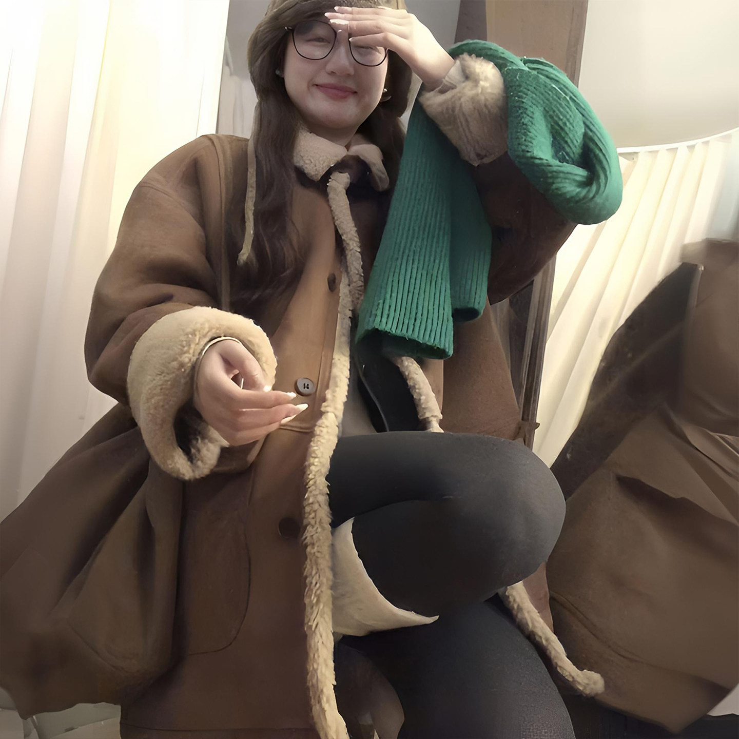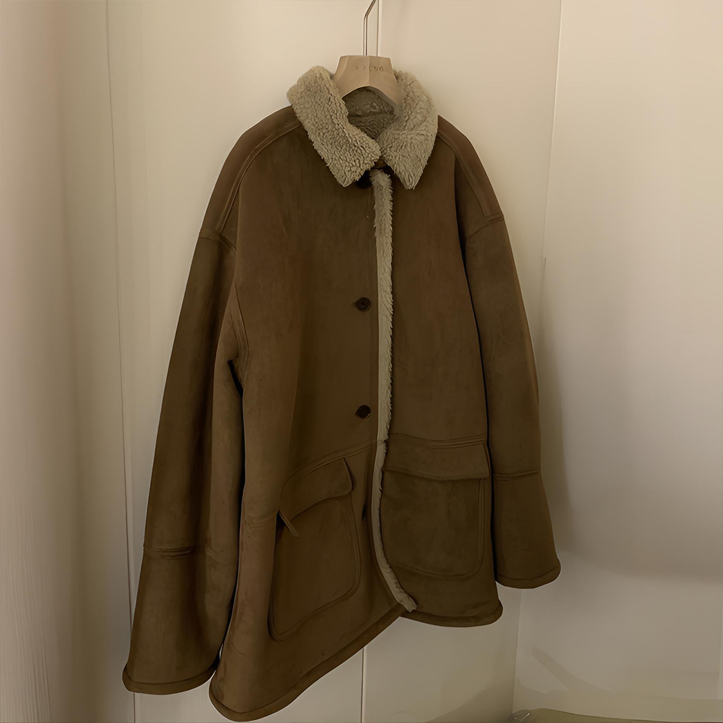 大码女装胖mm棕色加绒加厚羊羔毛外套女学生慵懒风百搭棉衣外套潮