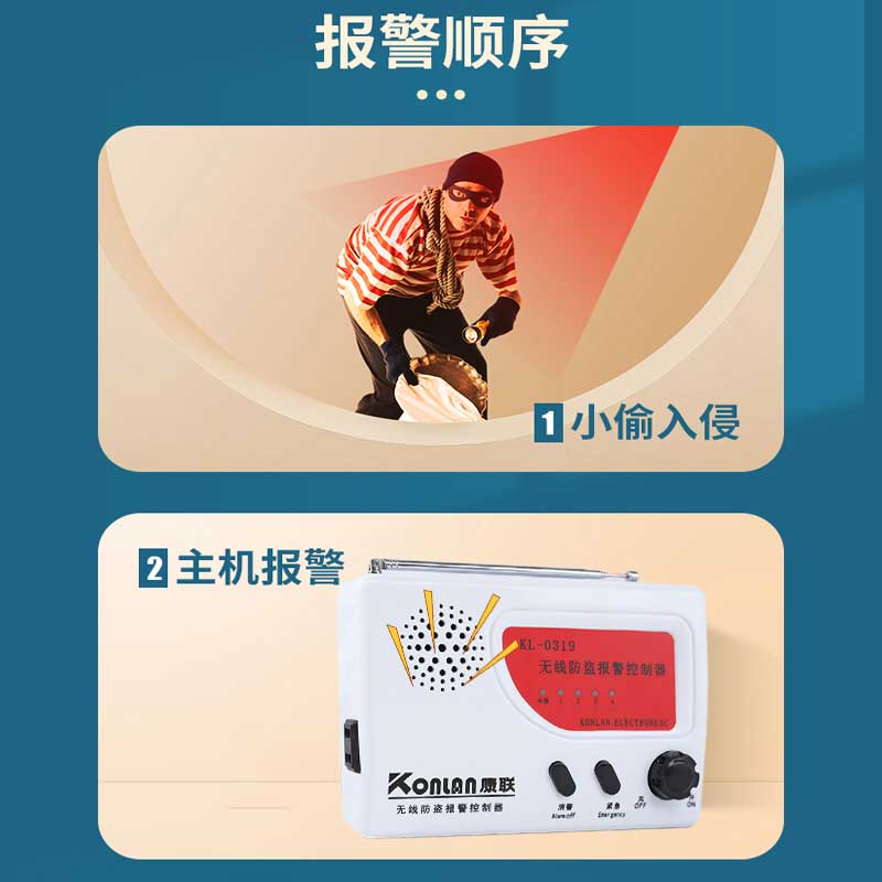 康联红外线防盗报警器家用小偷果园大棚人体感应户外无线远程距离