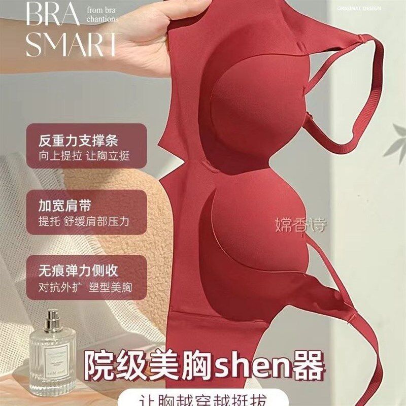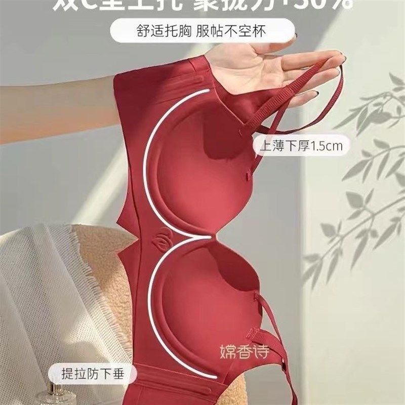 孕期哺乳本命年红色内衣女小胸聚拢显F大防下垂新娘结婚文胸罩孕