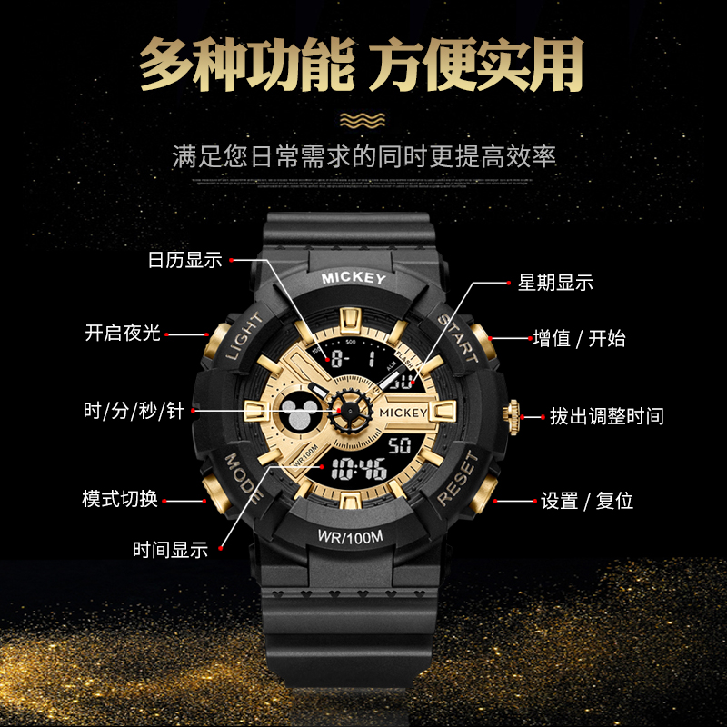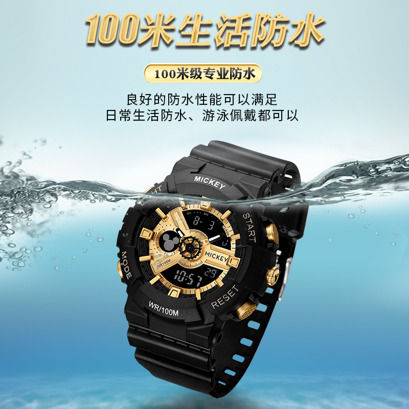 迪士尼手表男款学生初高中生青少年防水运动机械儿童中学生电子表
