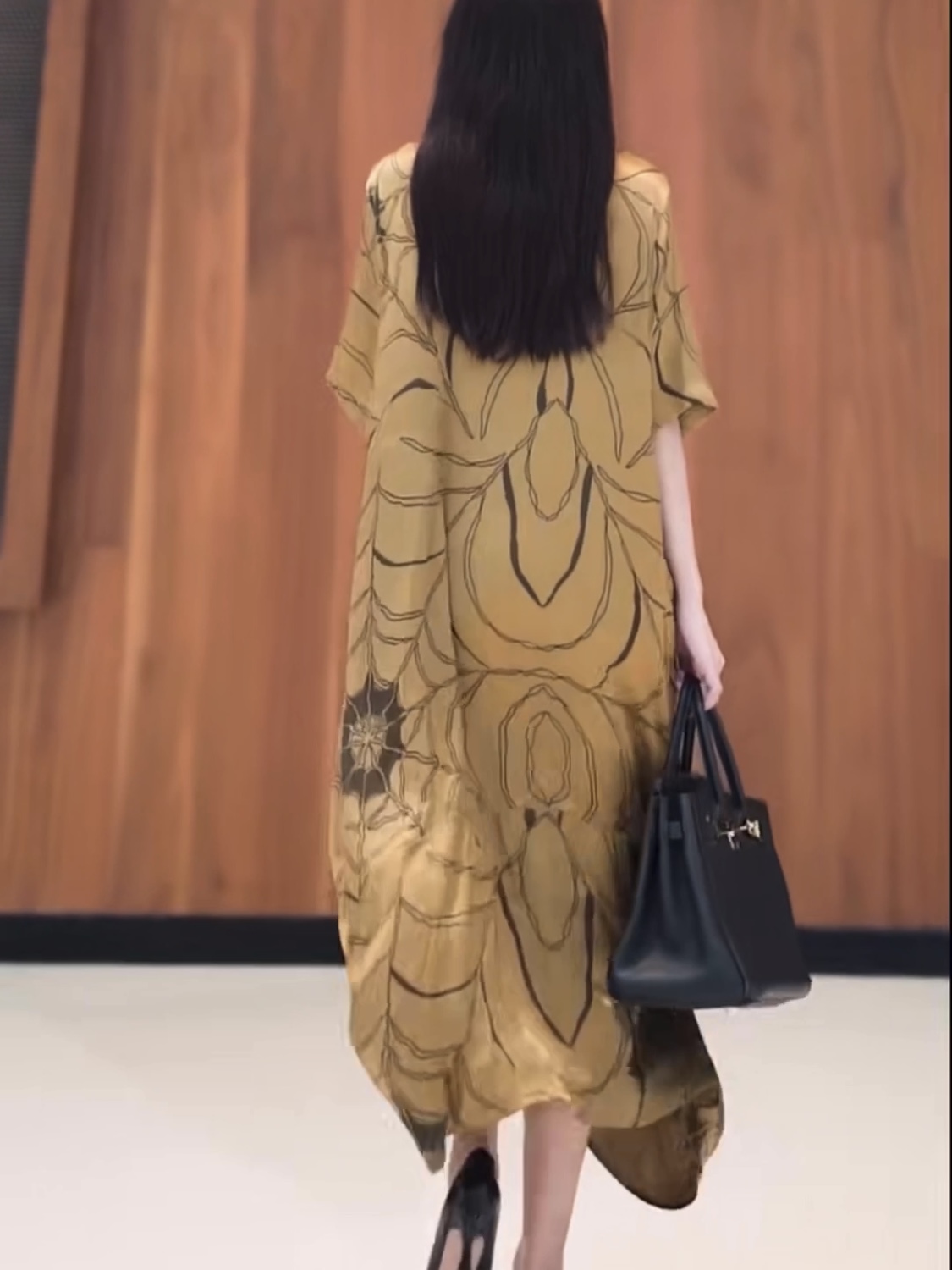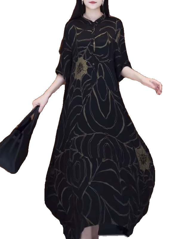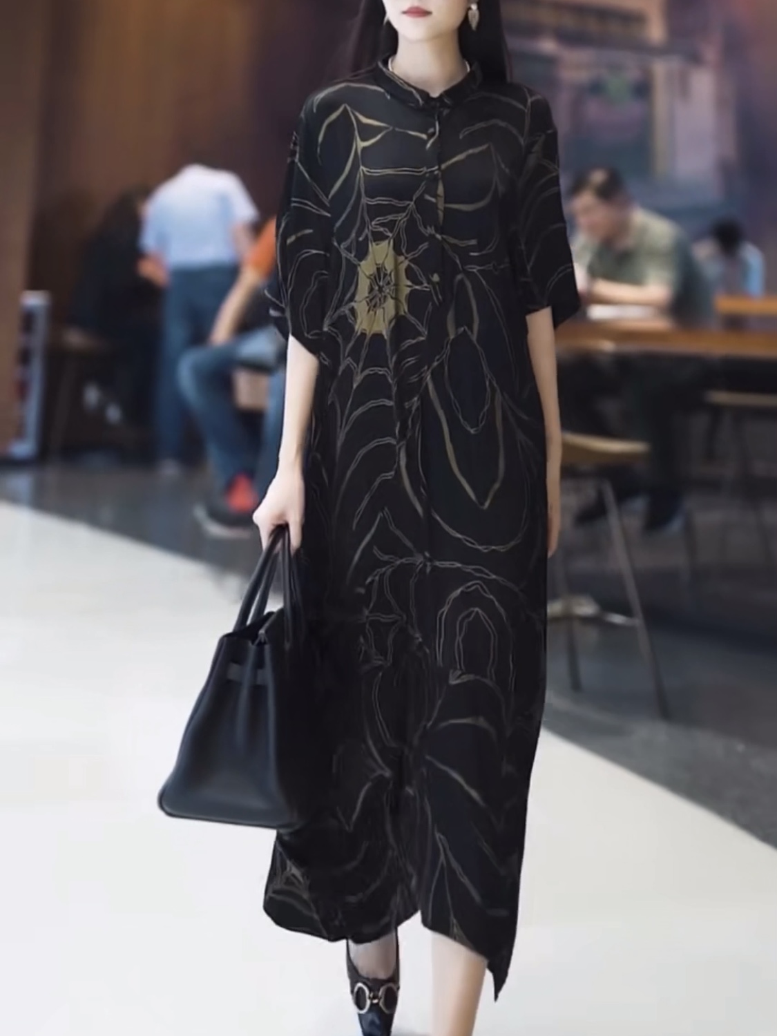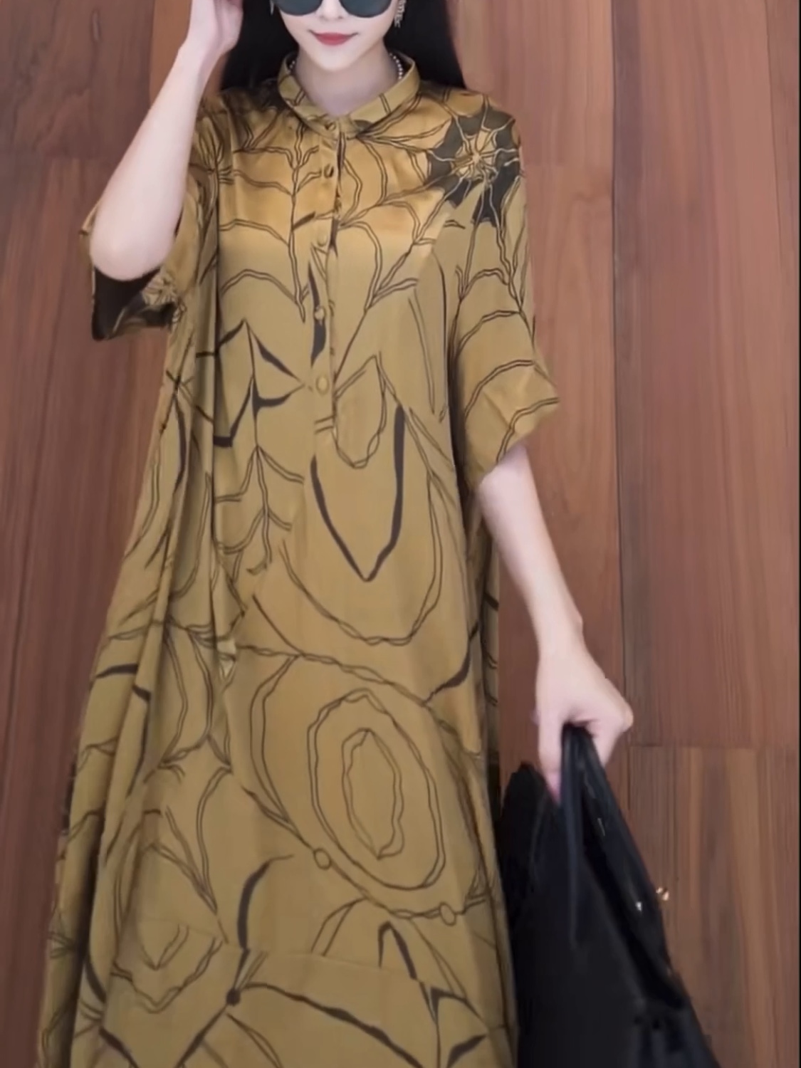 2024夏新文艺复古真丝醋酸大码连衣裙女装洋气减龄阔太太过膝裙子