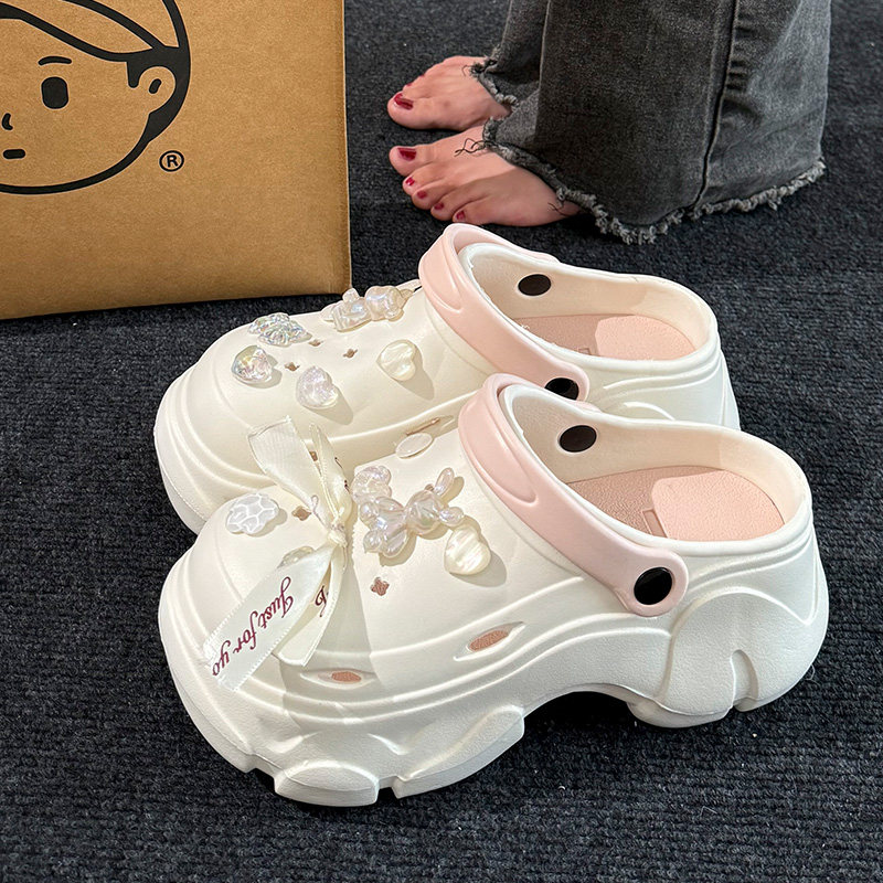 2026新款洞洞鞋女款夏防滑拍婚纱厚底增高神器凉鞋松糕鞋外穿婚鞋