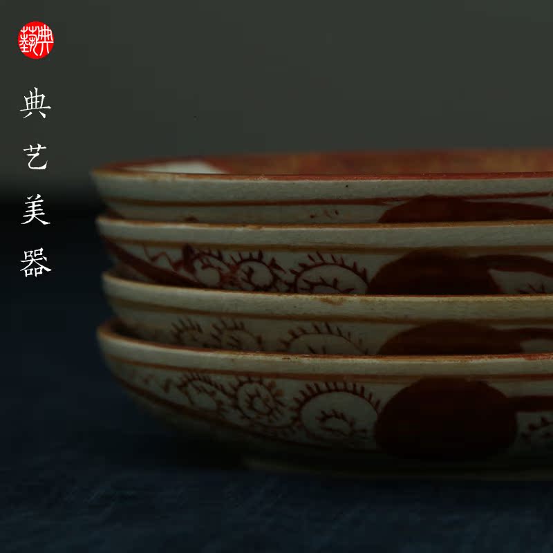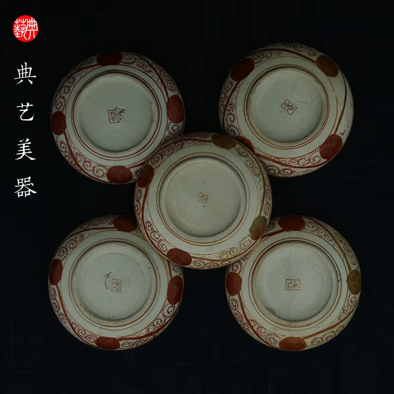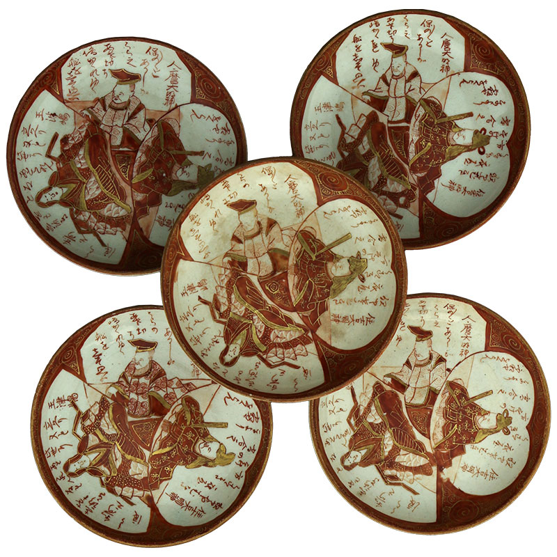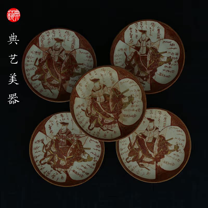 日本江户后期再兴九谷饭田屋宫本屋窖赤绘和歌仙手绘人物描金壶承