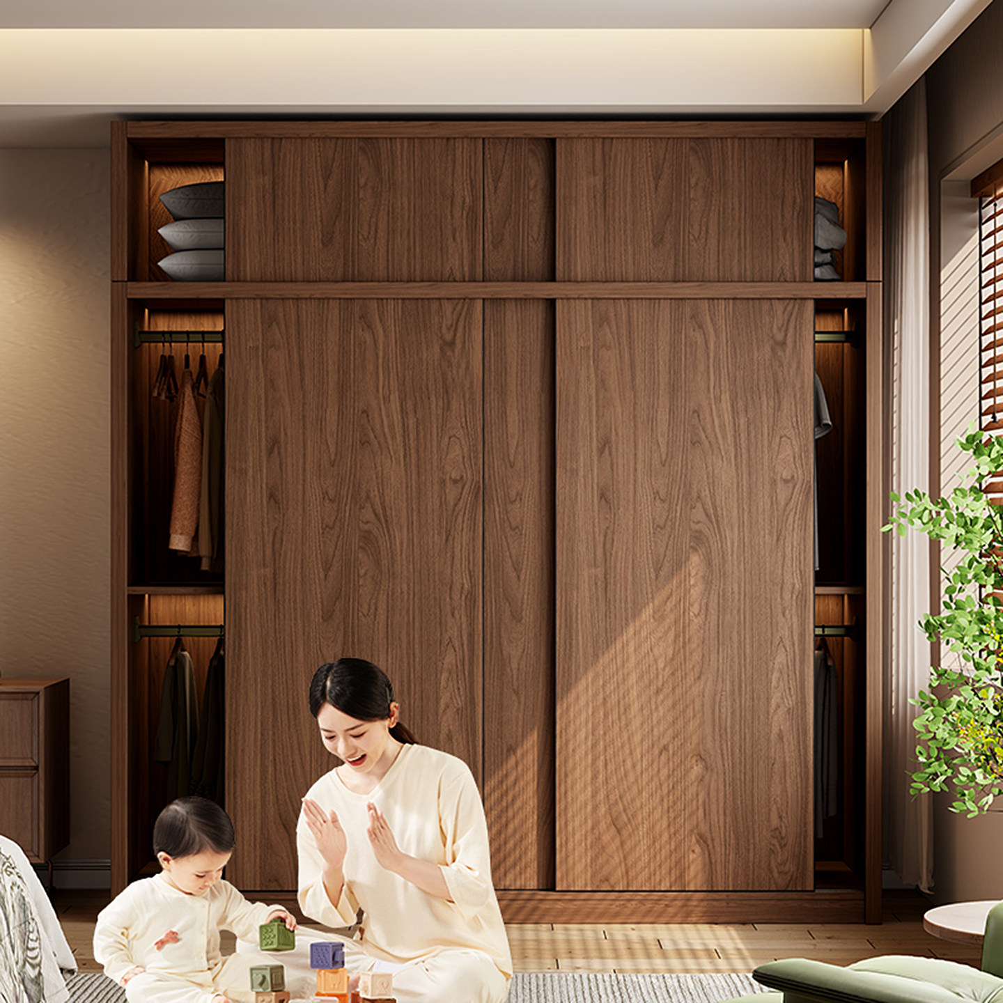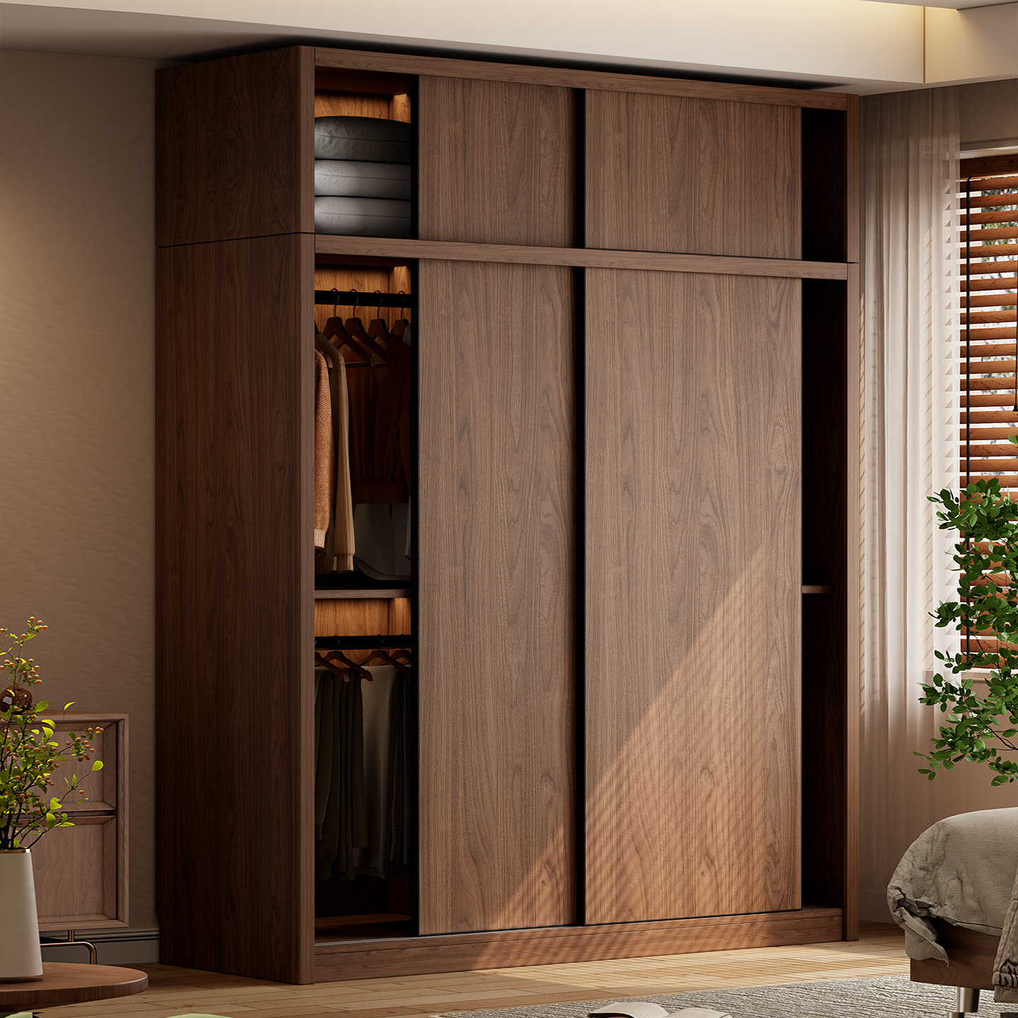 兔宝宝衣柜家用卧室轻奢一门到顶推拉门简易大衣橱