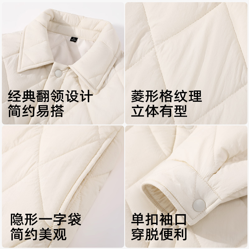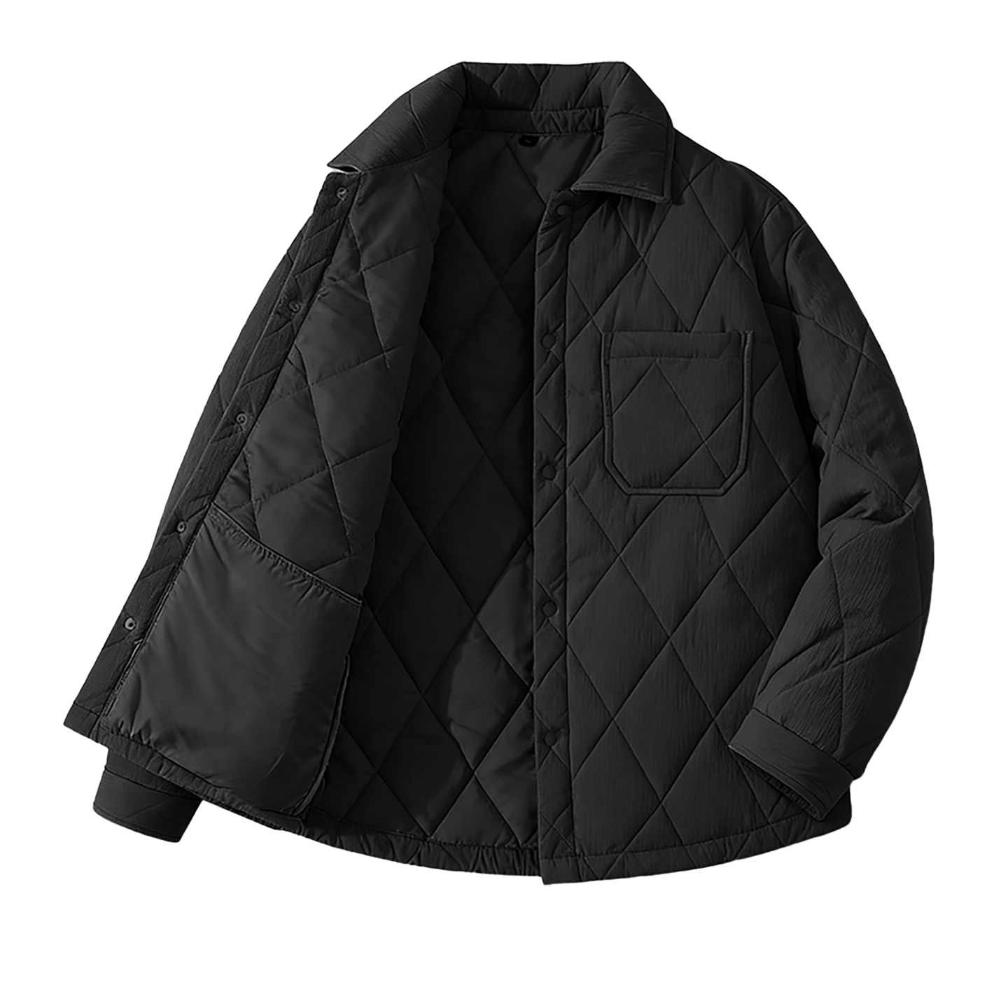 唐狮官方菱形格翻领加厚棉衣男冬季加绒抗寒保暖黑色男士棉服YB