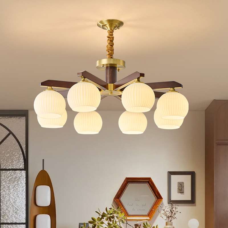 中古风客厅吊灯主灯复古中式全铜黑胡桃实木大气卧室餐厅吸顶灯具