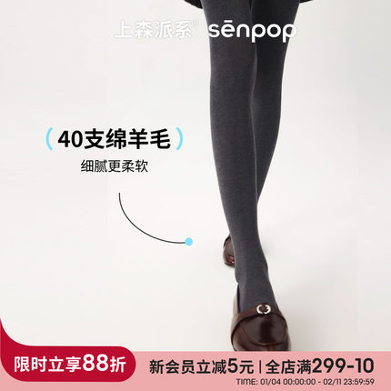 上森羊毛连裤袜女秋冬款哑光高弹打底袜子不掉档保暖纯色打底裤灰
